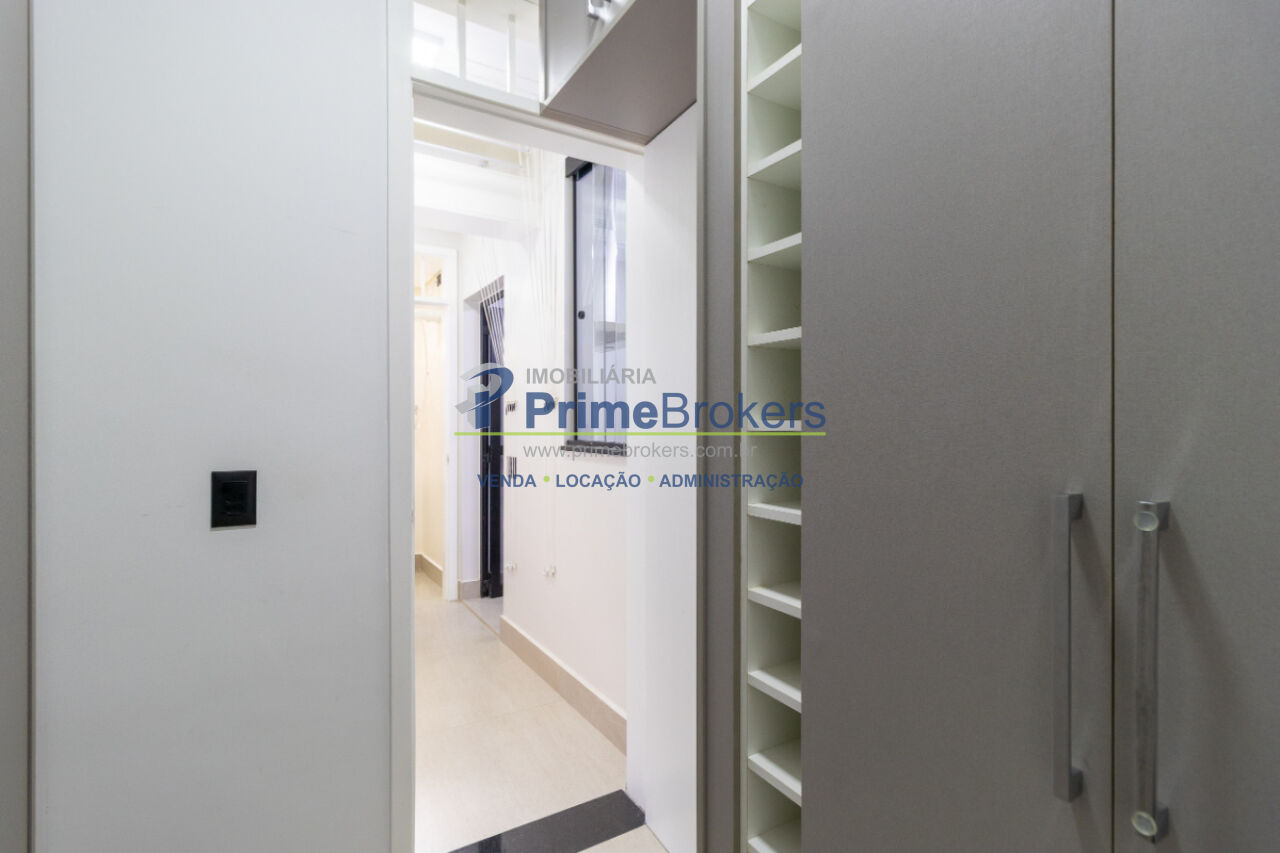 Suíte com armários planejados até o teto (Blanco Design), lustres, pontos para TV e internet