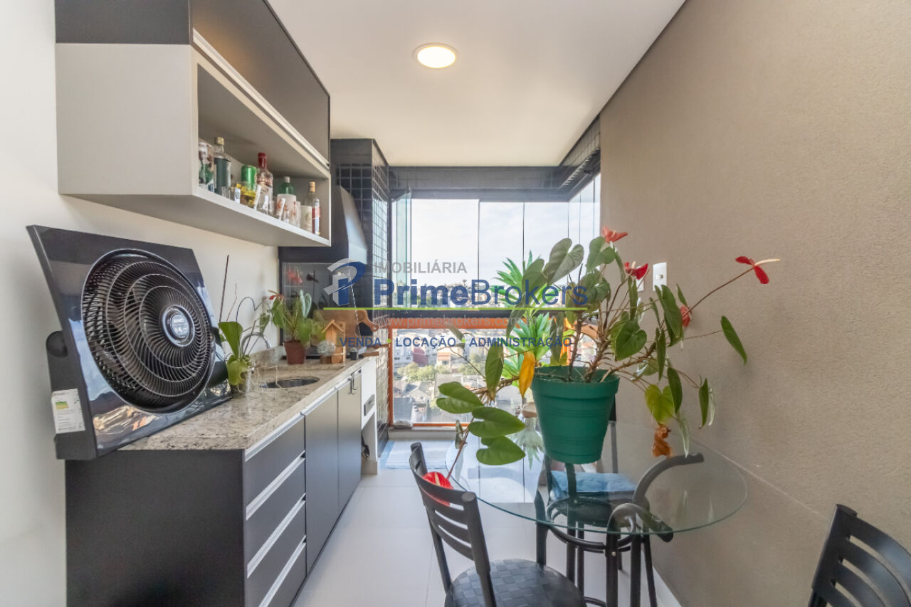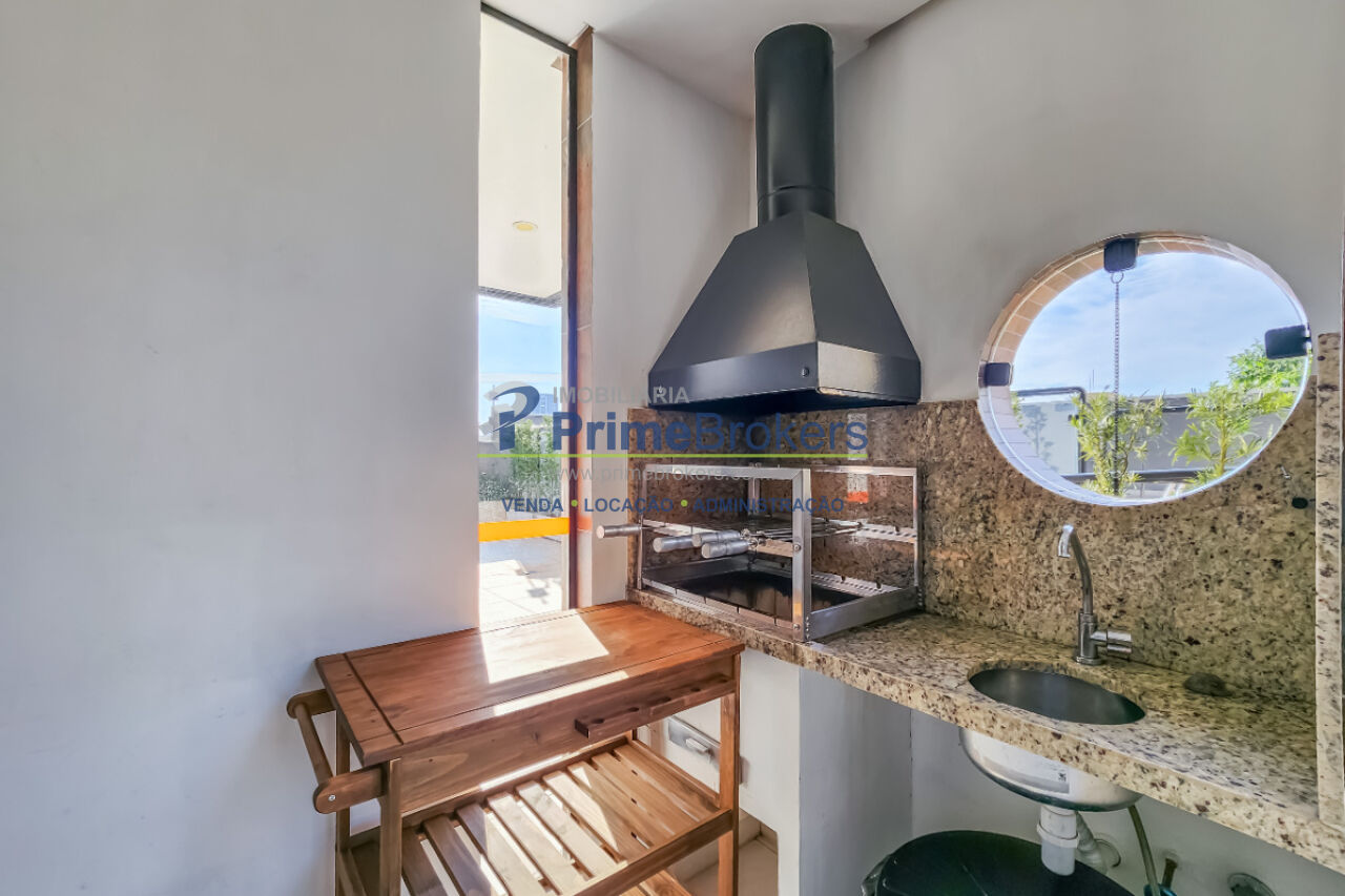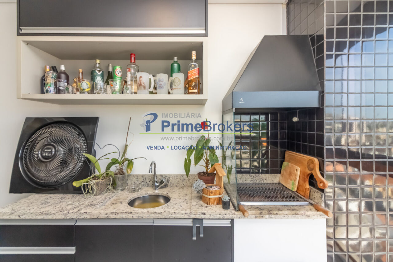 Apartamento moderno e bem distribuído, com 83 m², vista livre e varanda gourmet envidraçada, equipada com churrasqueira a carvão, bancada em granito, pia e armários sob medida.