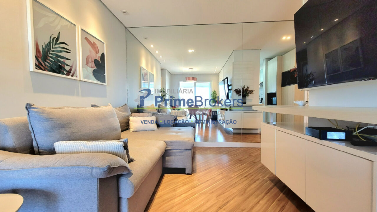 perfeitamente estar e jantar, se estende para uma sacada envidraçada com vista livre, criando um ambiente luminoso e
