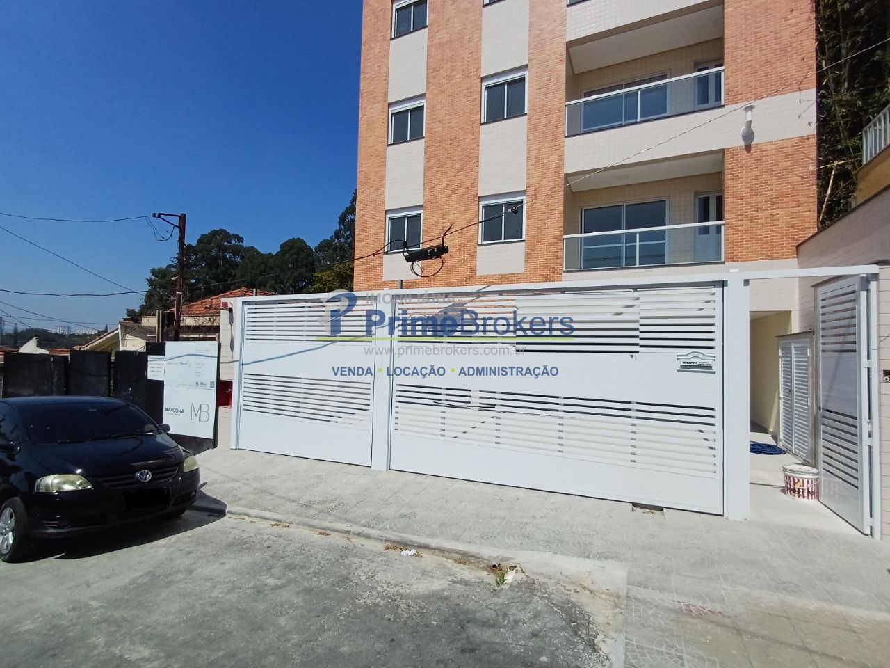 Condomínio com portão eletrônico e elevador.