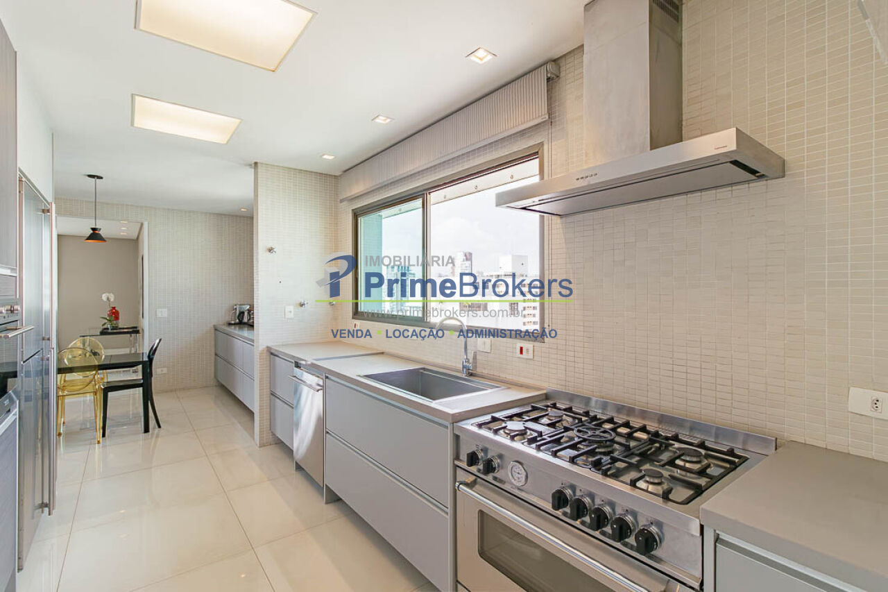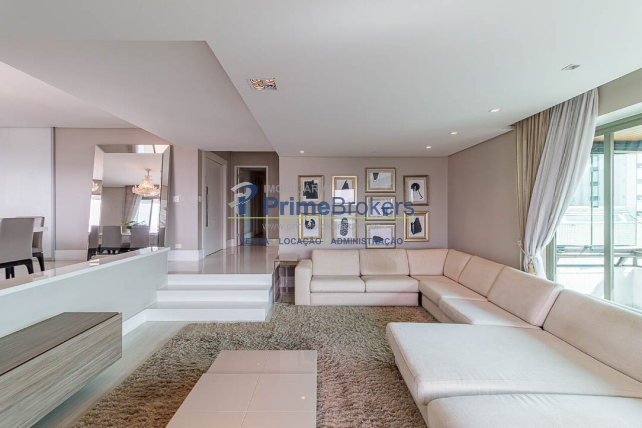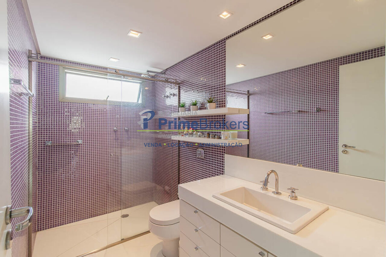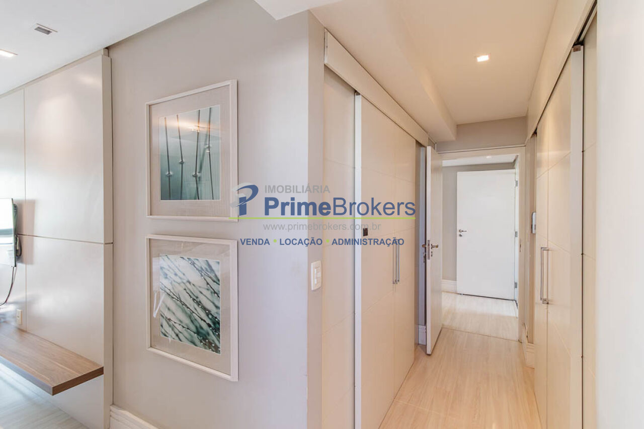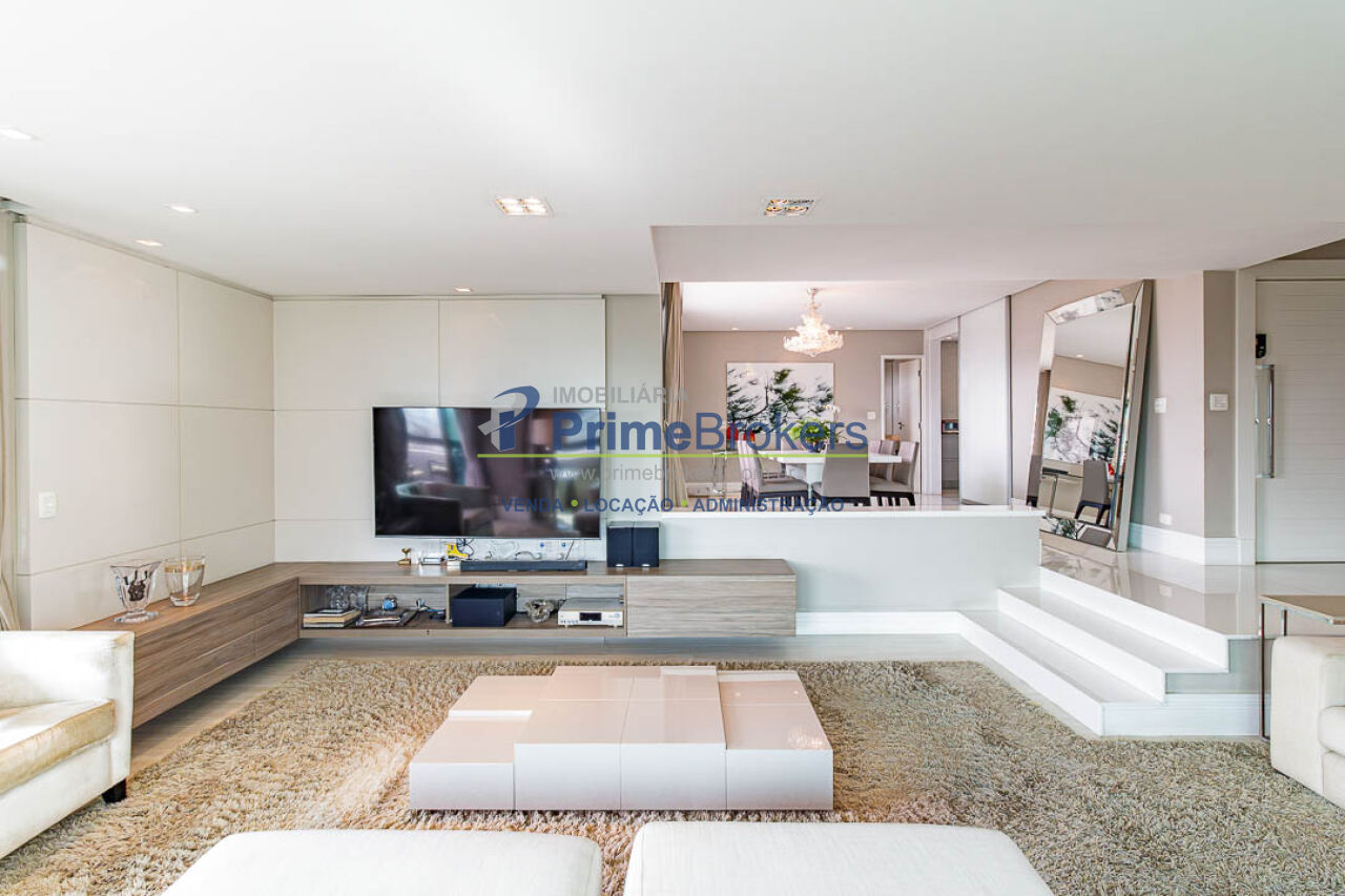 4 suítes (master com 2 closets), 3 vagas fixas, living 3 ambientes, sacada, sala íntima, home office, home theater, adega climatizada, copa, despensa, dependência de funcionário, área de serviço, lavabo, banheiro Sr. e Sra., piso porcelanato, ar condicionado central, aquecimento central, gás encanado, interfone, hall privativo, vista panorâmica