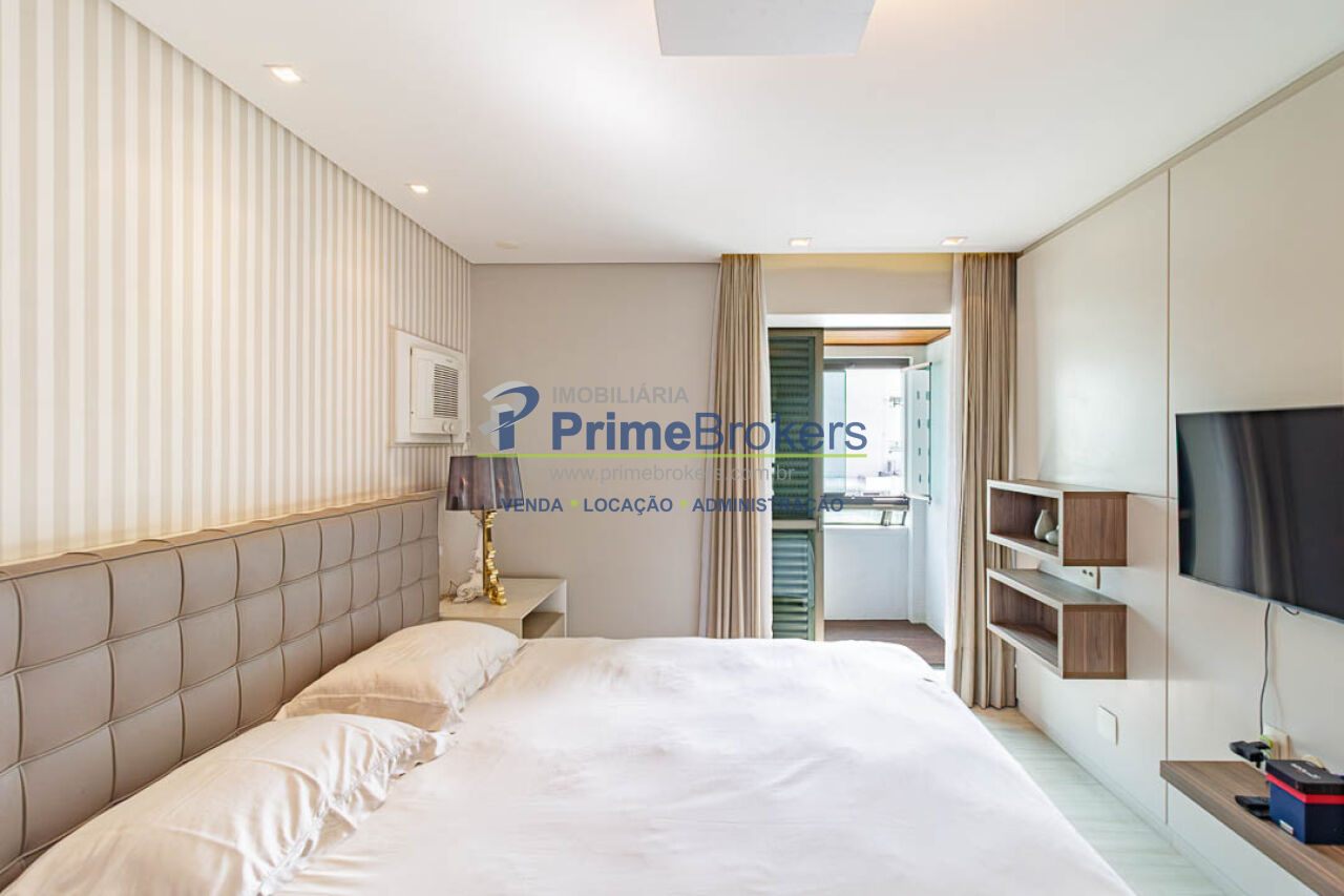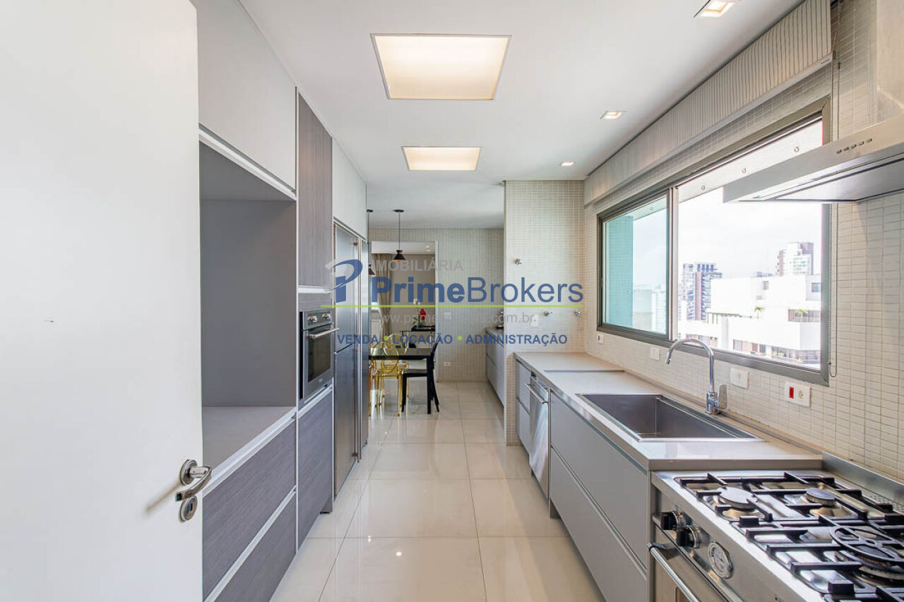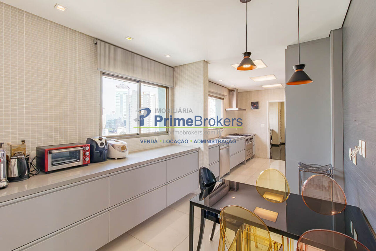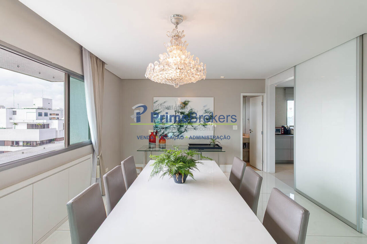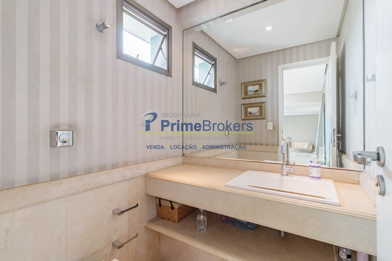4 suítes (master com 2 closets), 3 vagas fixas, living 3 ambientes, sacada, sala íntima, home office, home theater, adega climatizada, copa, despensa, dependência de funcionário, área de serviço, lavabo, banheiro Sr. e Sra., piso porcelanato, ar condicionado central, aquecimento central, gás encanado, interfone, hall privativo, vista panorâmica