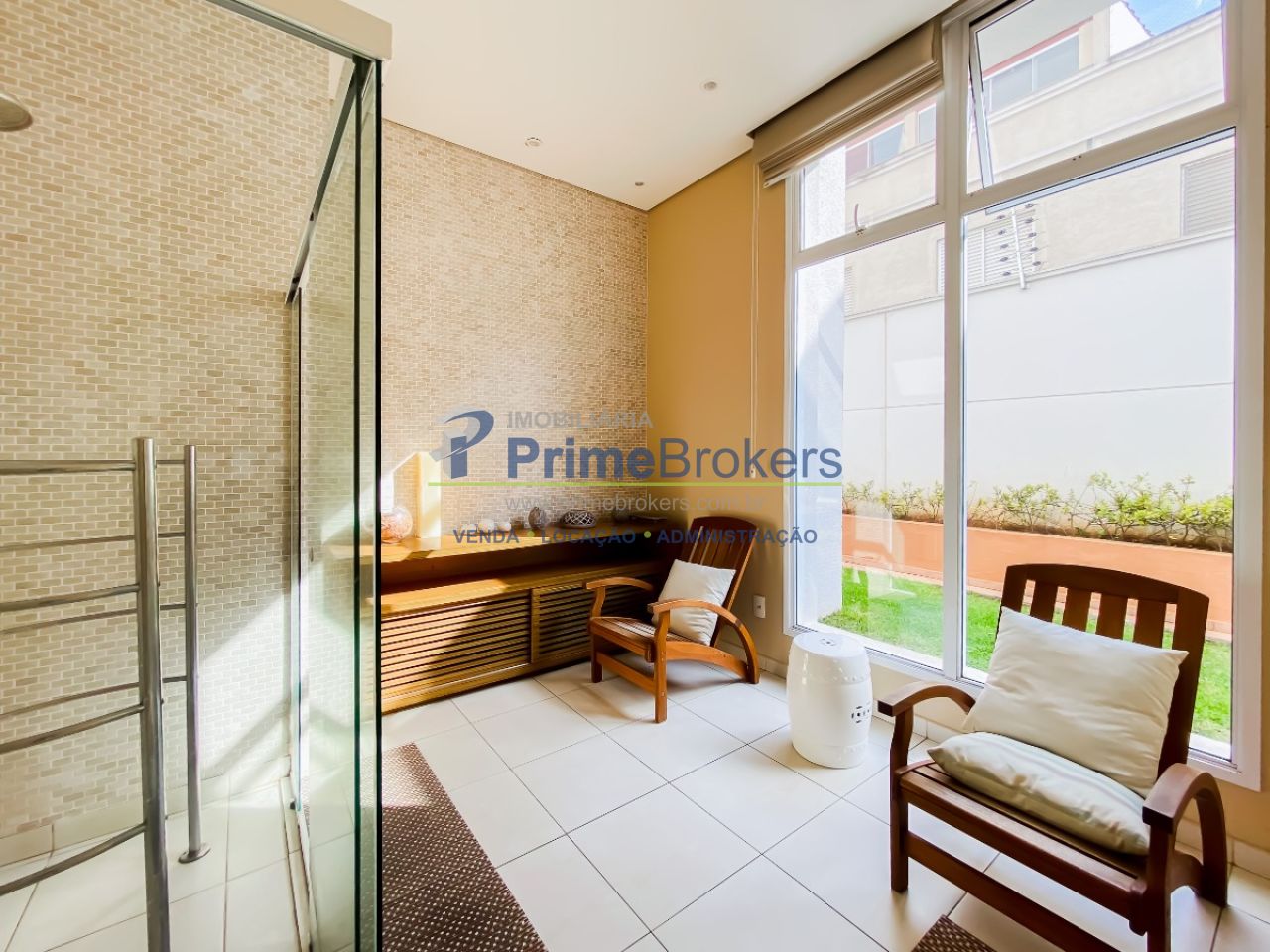 de sauna. Para os mais ativos, há também uma quadra esportiva e, para os momentos de pausa, diversas áreas verdes e