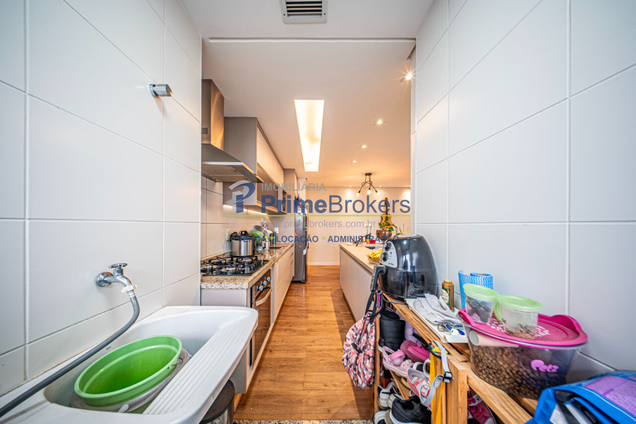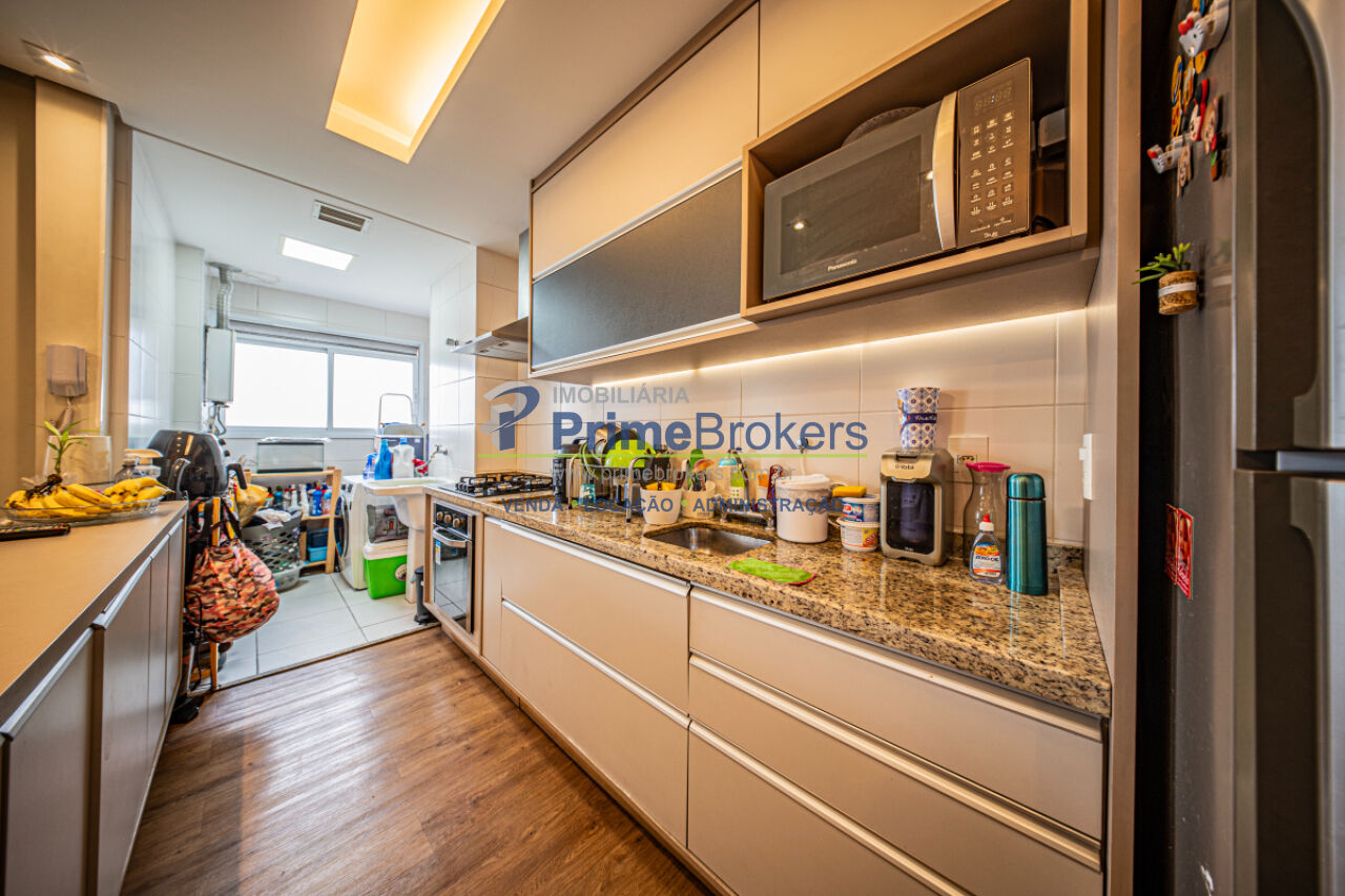 Armários planejados, Varanda gourmet ampla, Piso porcelanato, Piso laminado, Cozinha integrada, Área de serviço, Churrasqueira, Gás encanado