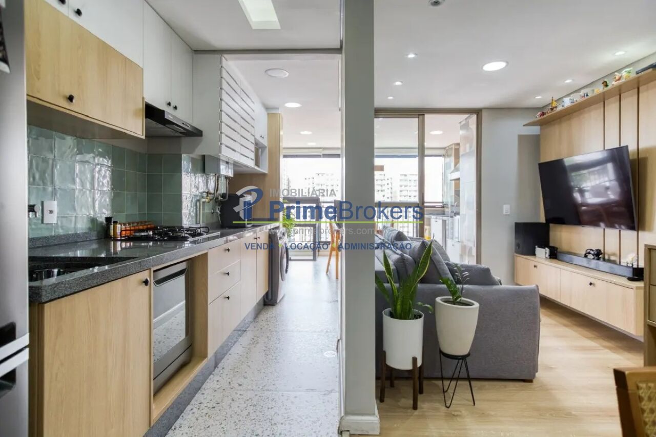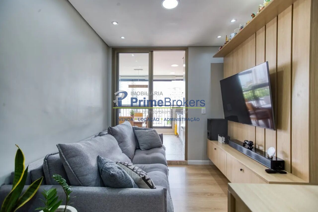Apartamento à venda no Condomínio Living Clássico Zona Oeste da Cyrela, um empreendimento moderno e completo na Barra Funda. Este imóvel de 67m² possui uma planta inteligente com acabamentos de alto padrão e marcenaria de primeira linha. A área social é toda integrada, com sala bem iluminada com painel ripado em madeira, cozinha americana planejada com eletrodomésticos de aço inox e cooktop de indução, e uma espetacular varanda gourmet envidraçada com churrasqueira à carvão. Um projeto de iluminação detalhado valoriza todos os ambientes.