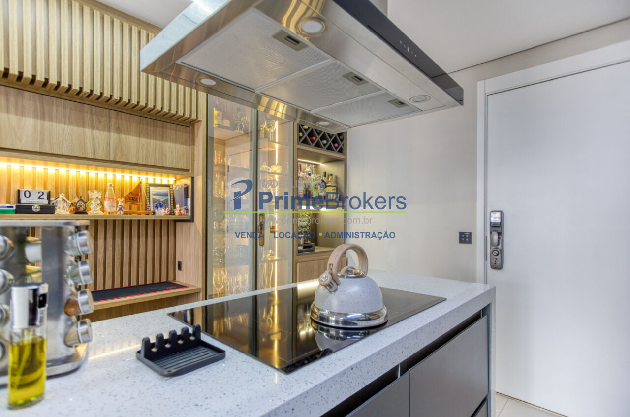 Este imóvel proporciona um estilo de vida contemporâneo e sofisticado, ideal para quem busca conforto e lazer completo. A área social é o ponto central do apartamento, projetada para a máxima convivência. A cozinha americana é moderna e sofisticada, pensada para quem ama cozinhar e receber, e apresenta como grande destaque uma ilha central equipada com cooktop e coifa de alta performance, rodeada por marcenaria planejada com detalhes ripados e iluminação em LED.