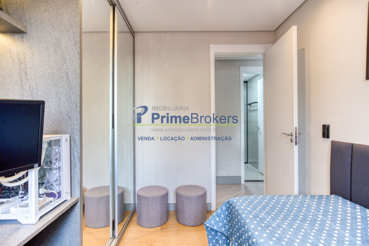 As áreas íntimas seguem o mesmo padrão de excelência, com quartos aconchegantes e marcenaria planejada de ponta a ponta, incluindo uma suíte principal com closet e um quarto que pode ser usado como um home office sofisticado. Os acabamentos internos, como revestimentos em porcelanato e projeto luminotécnico, reforçam o alto padrão do imóvel.