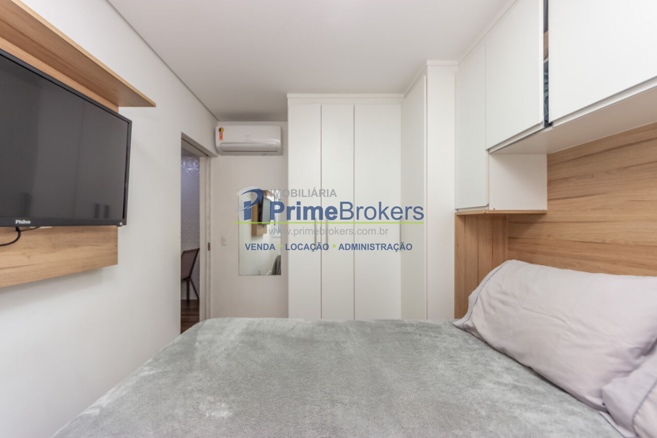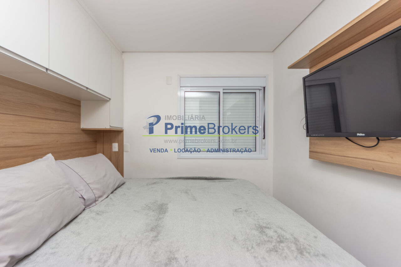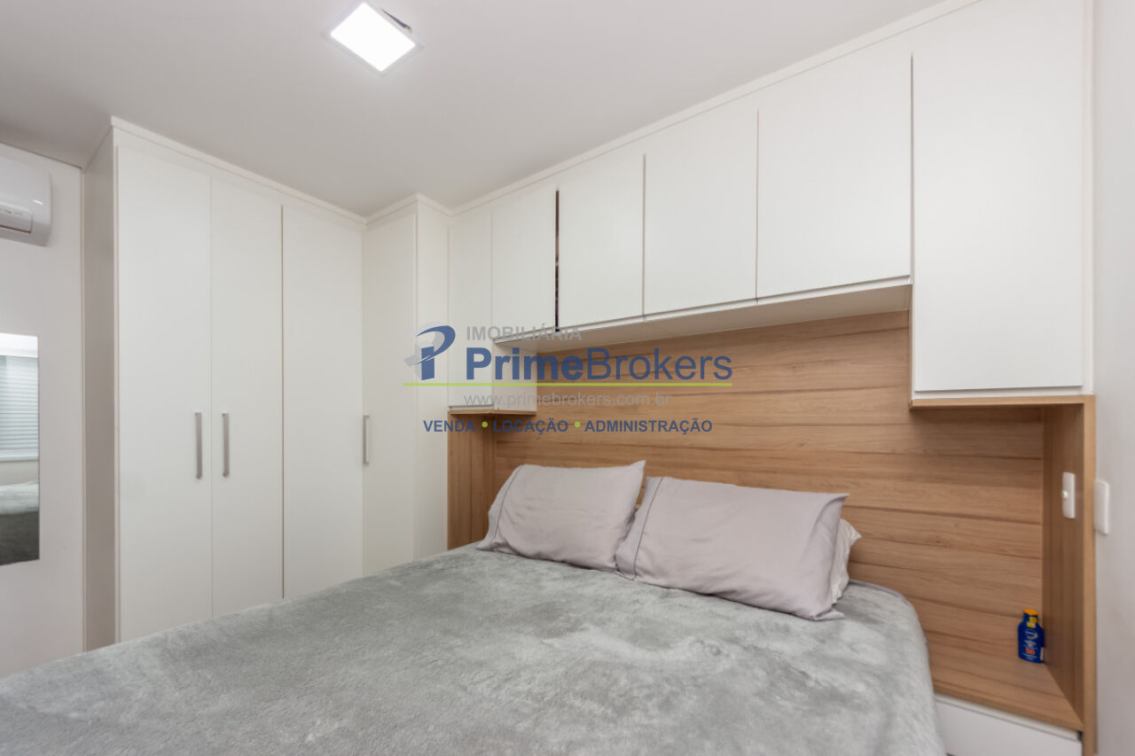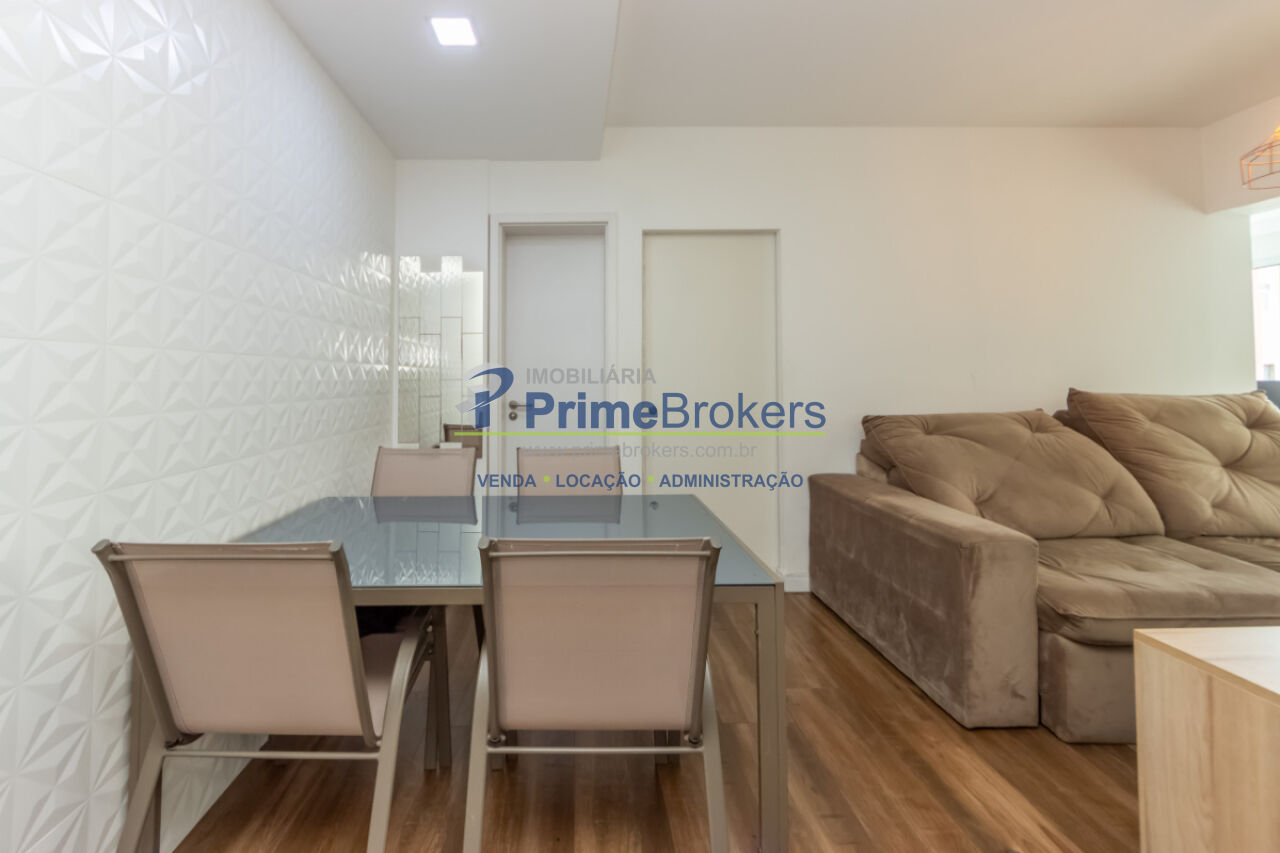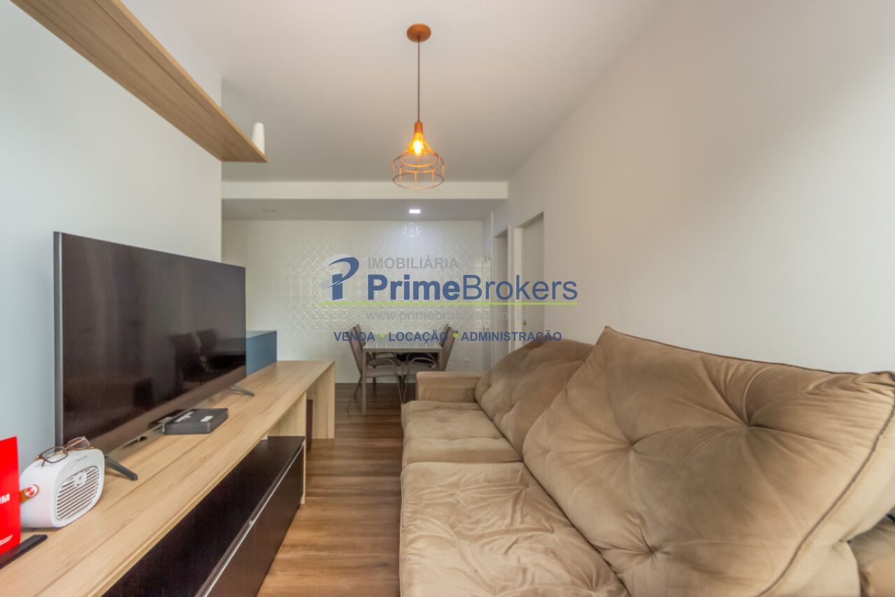 1 dormitório, 1 banheiro, 1 vaga de garagem, área útil de 46m², sacada com vista, cozinha integrada, sala de estar, sala de jantar, armários planejados, área de serviço