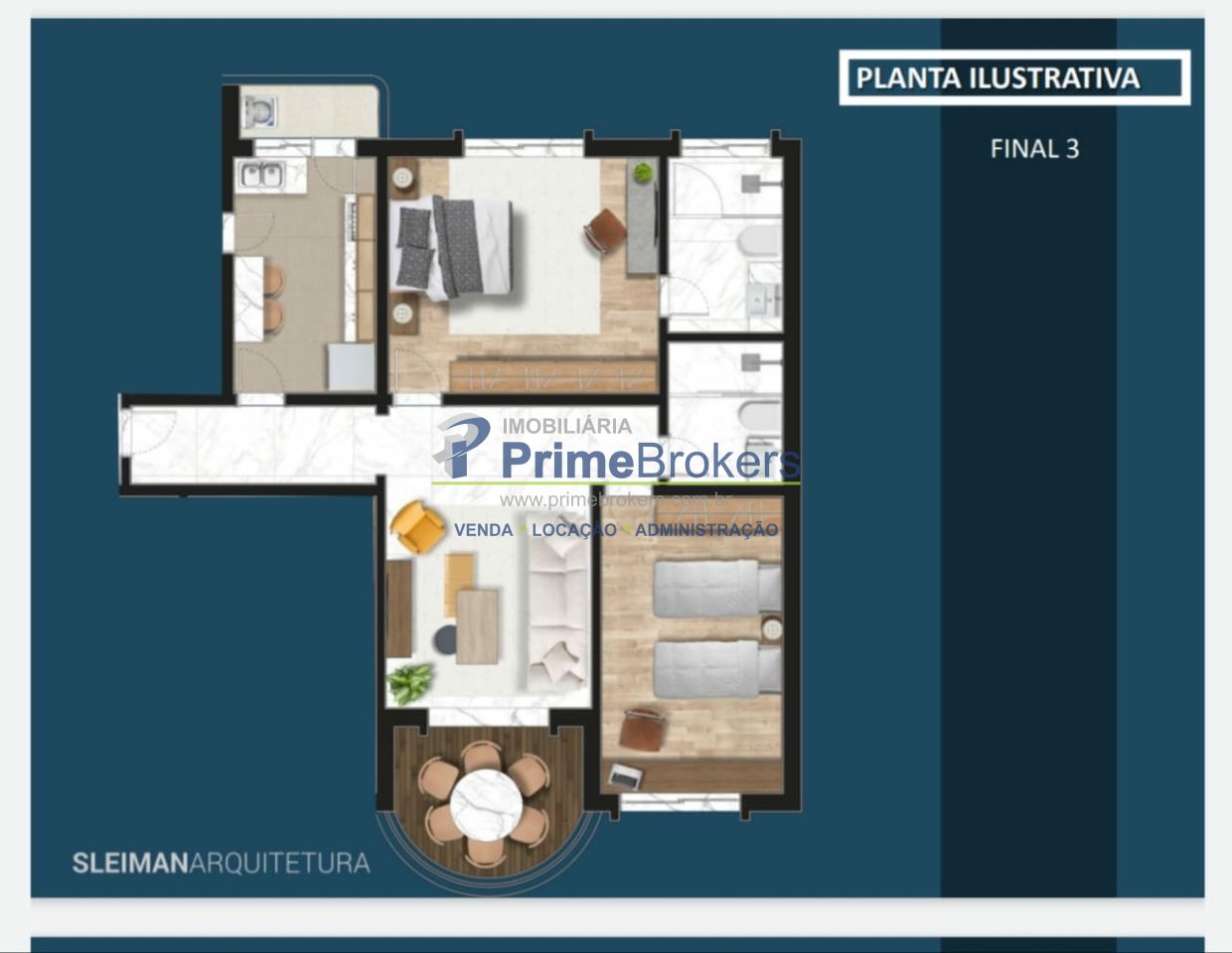 A área privativa é composta por 2 quartos, 1 banheiro, sala de estar, cozinha e área de serviço.