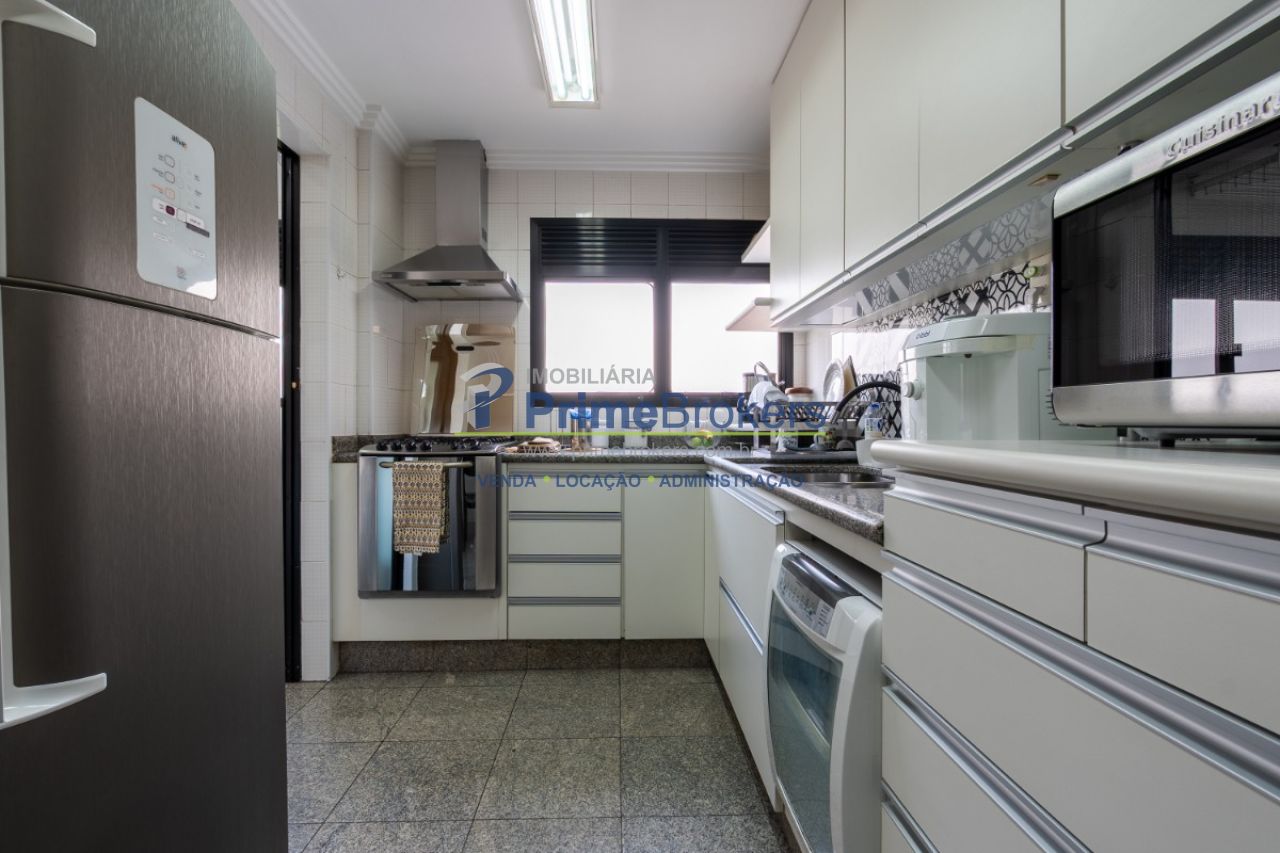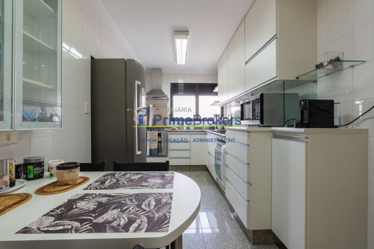 3 suítes (master com closet e sacada), varanda envidraçada, sala ampla para 3 ambientes, cozinha planejada com copa, ar-condicionado, iluminação planejada, área de serviço independente, 3 vagas de garagem