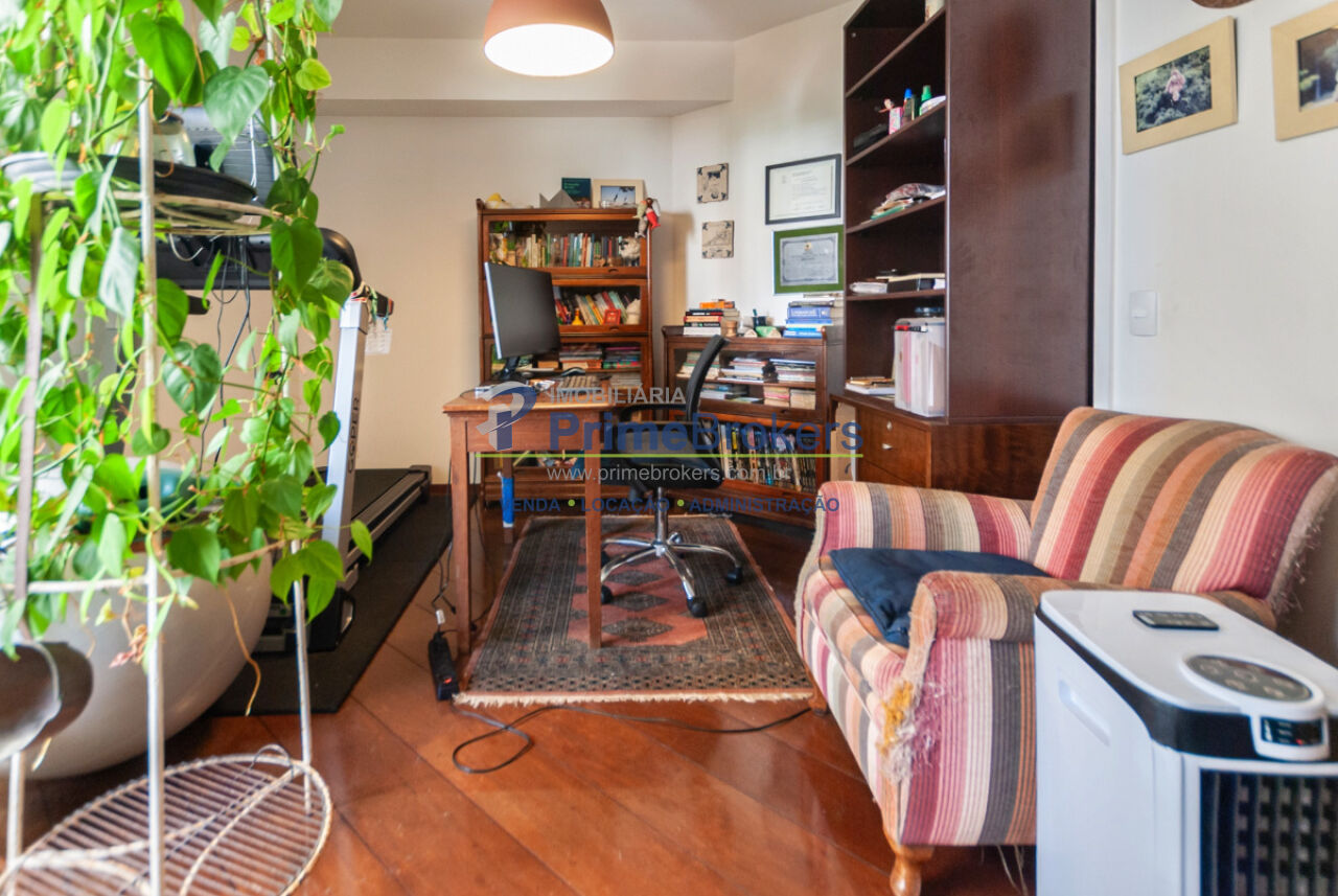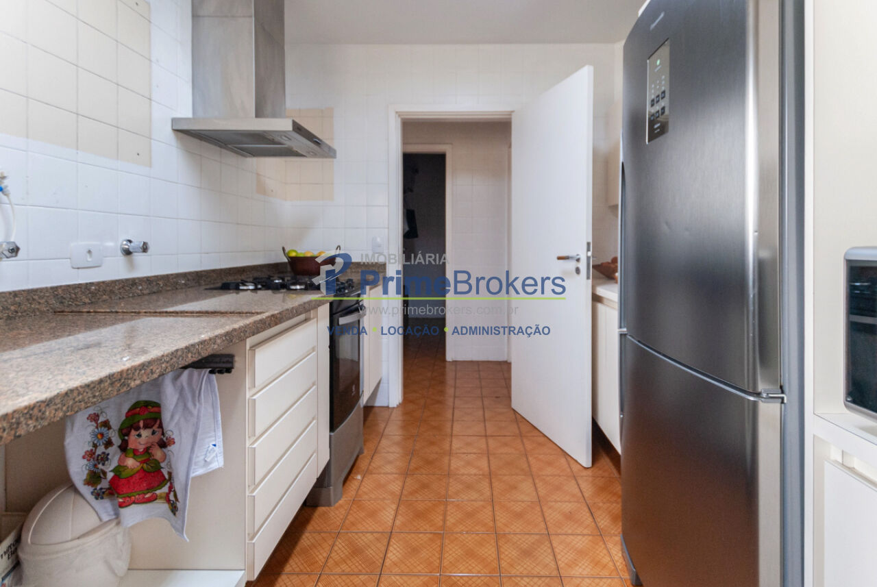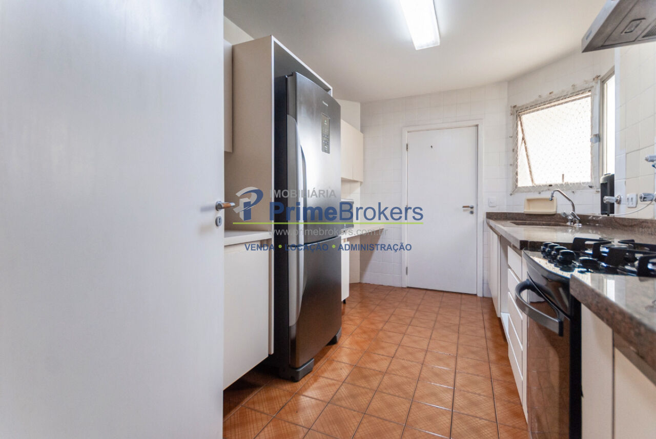 3 dormitórios (1 suíte), sala de estar com lareira e sacada, cozinha espaçosa com despensa, dependência de serviço completa, 4 banheiros, lavabo, piso de madeira, móveis planejados, 1 vaga de garagem