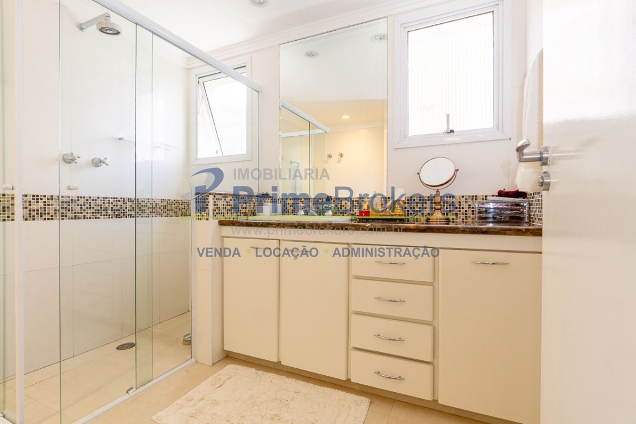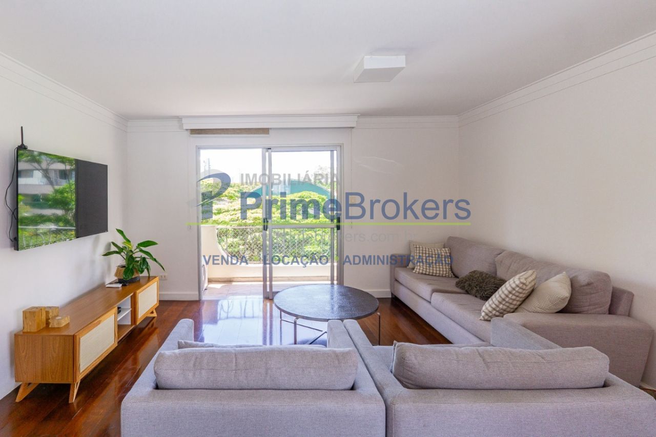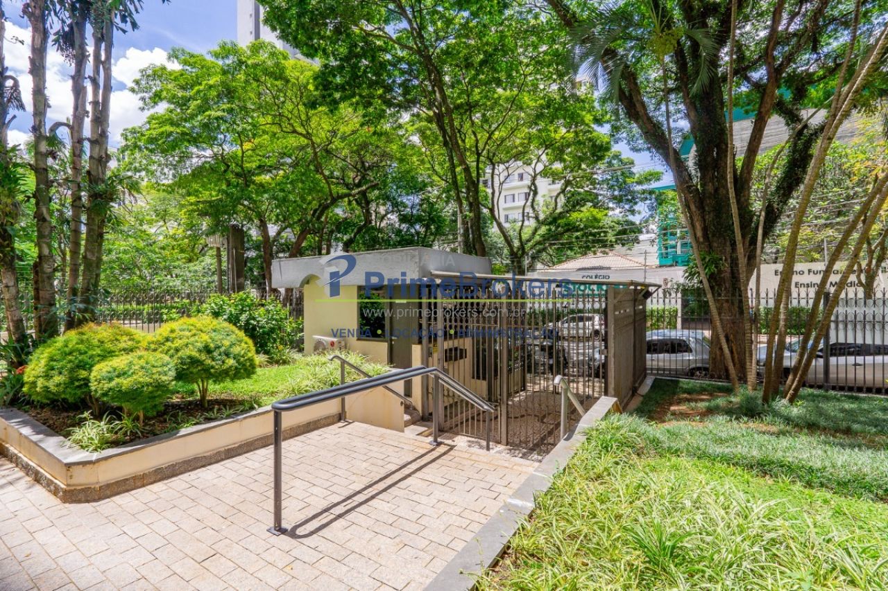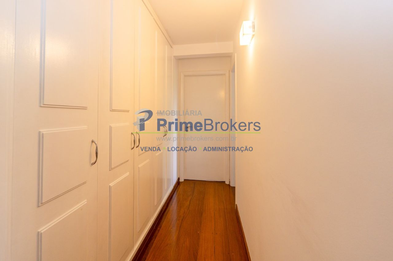 Vista permanente para as copas das árvores, sala clara com varanda, copa, cozinha ventilada com armários de qualidade, 3 suítes iluminadas, suíte master com banheiro amplo e closet, área de serviço espaçosa, banheiro de serviço, dependência de funcionário, água quente, lavabo, gás encanado, hall privativo, piso de madeira