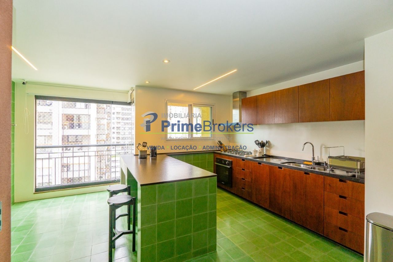 A cozinha tem um charme especial . Ela foi integrada à área da churrasqueira, proporcionando praticidade e funcionalidade . A lavanderia é espaçosa e conta com banheiro de serviço. O apartamento ainda conta com 4 vagas de garagem e depósito no subsolo.