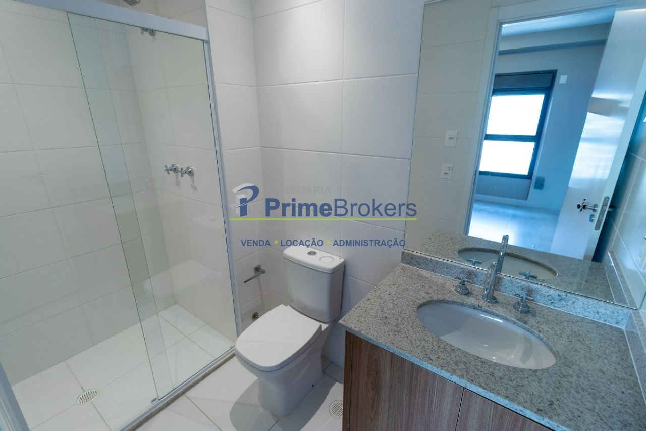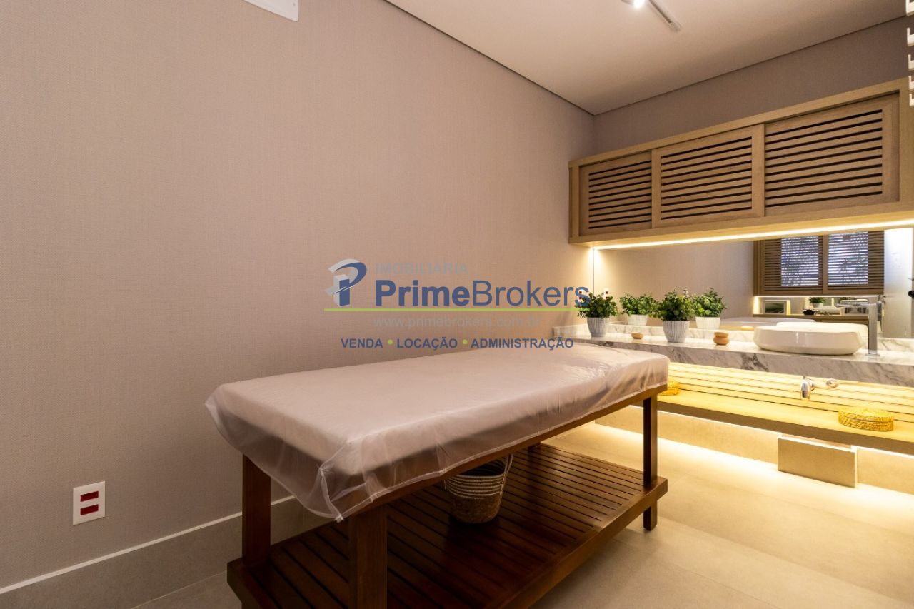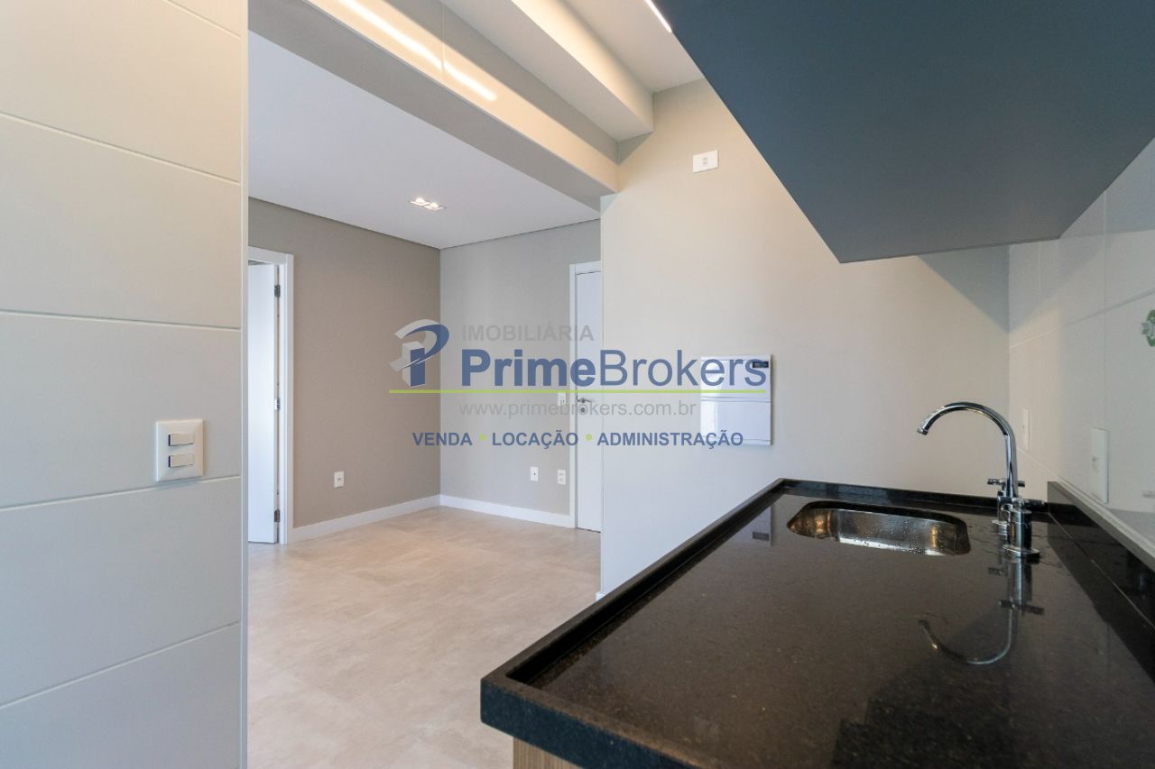 1 dormitório e 1 suíte com ar-condicionado, living integrado à cozinha, varanda ampla, lavabo, armários planejados em todos os ambientes, 1 vaga de garagem, nunca habitado