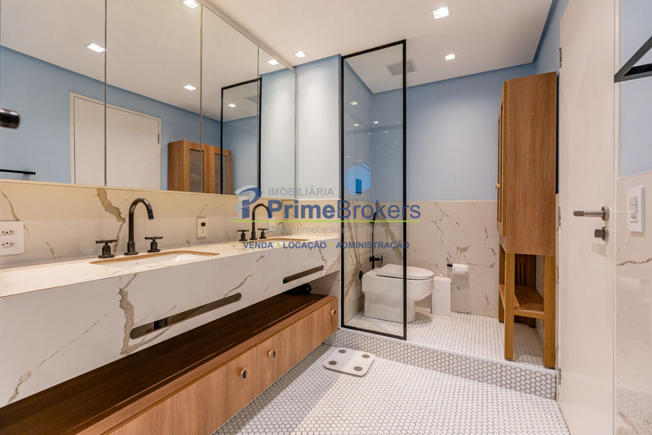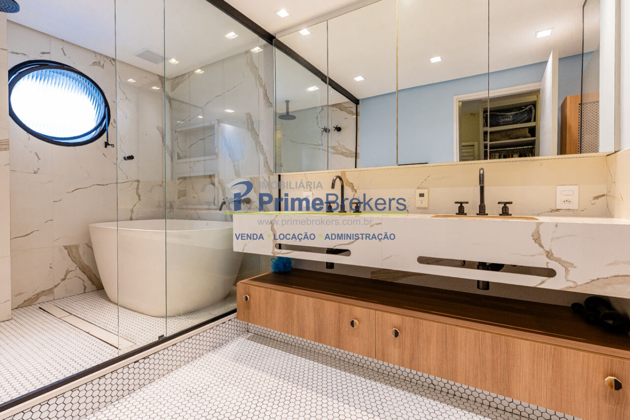 Reformado, acabamentos refinados, suíte master com hidromassagem e closet, sala ampla com excelente iluminação, cozinha com armários planejados, área de serviço separada, lavabo, hall privativo, infraestrutura para ar-condicionado, 2 vagas demarcadas