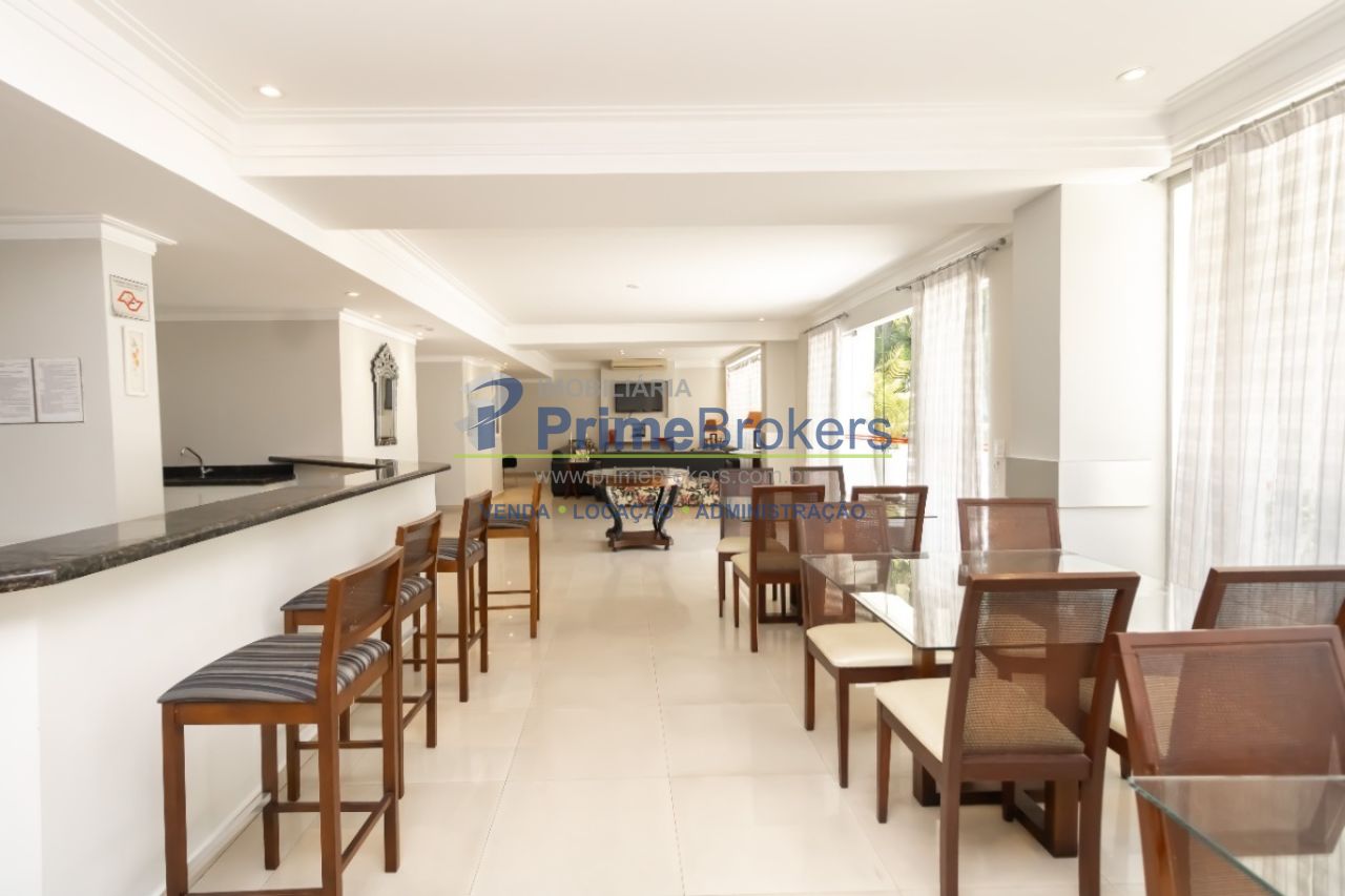 A sala ampla, com ar condicionado em todos os ambientes, oferece um espaço versátil e acolhedor, enquanto a sacada com vista para o verde é o local perfeito para relaxar e apreciar a tranquilidade ao seu redor.