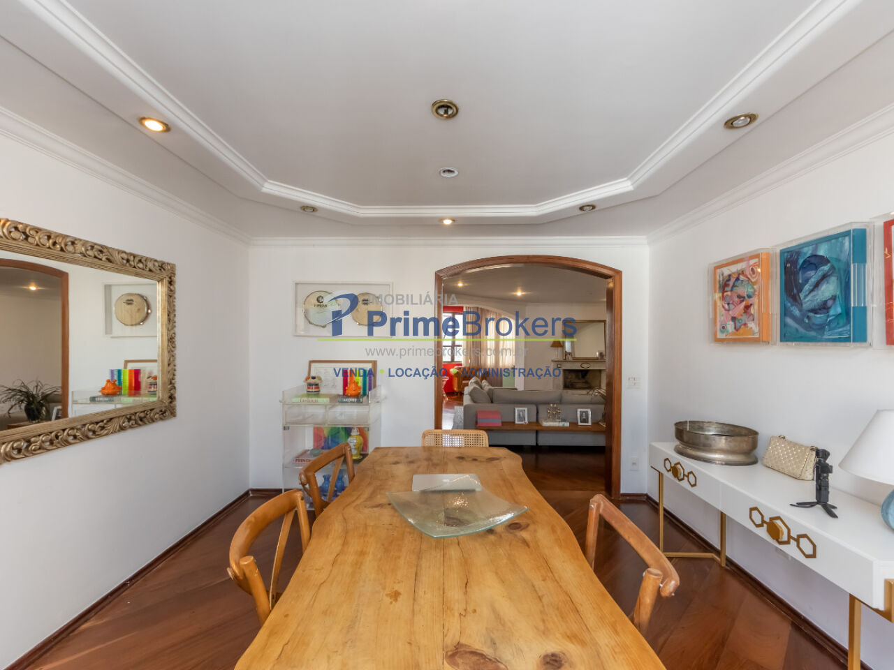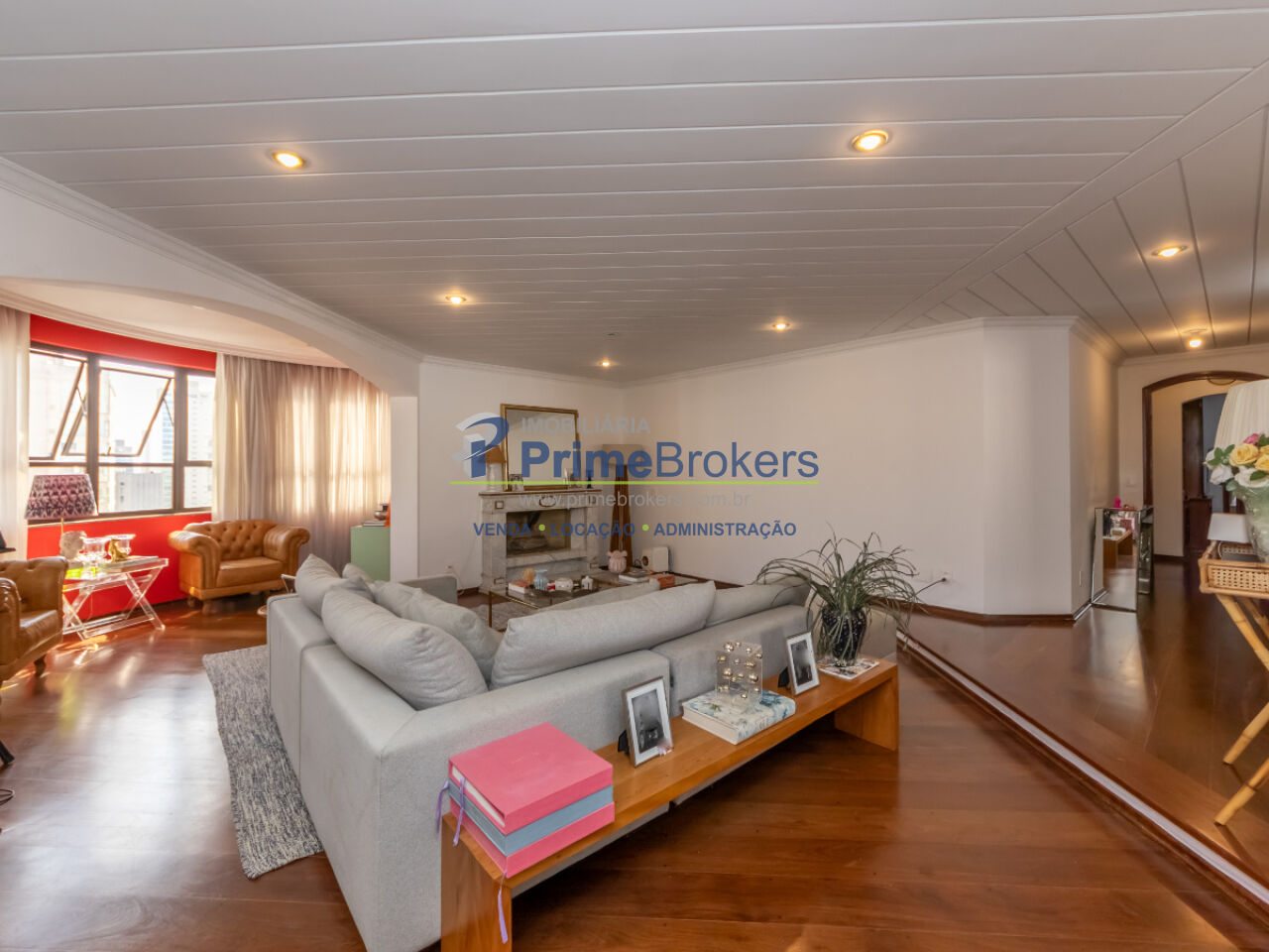 252m², 4 dormitórios sendo 2 suítes, apartamento totalmente reformado, 4 vagas, planta inteligente, varanda com churrasqueira, copa, banheiro de serviço, área de serviço, closet, dependência de funcionário, móveis planejados, lavabo, lareira, piso de madeira, sacada, vista para a cidade