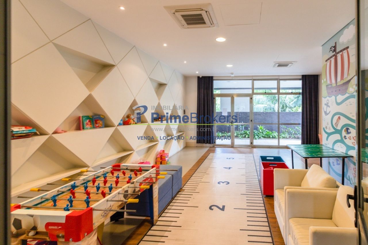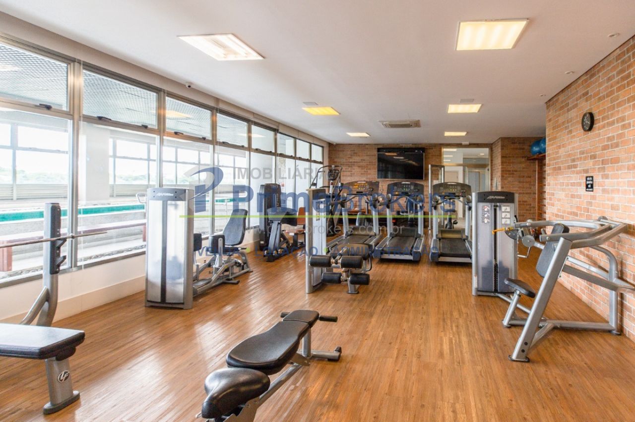 Academia completa, piscina coberta, piscina adulto, quadra de tênis, quadra de squash, salão de festas, sala de jogos, brinquedoteca, portaria 24h, elevador social, elevador de serviço