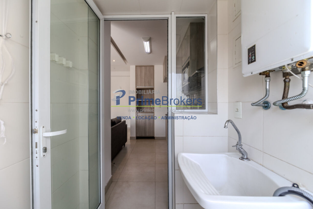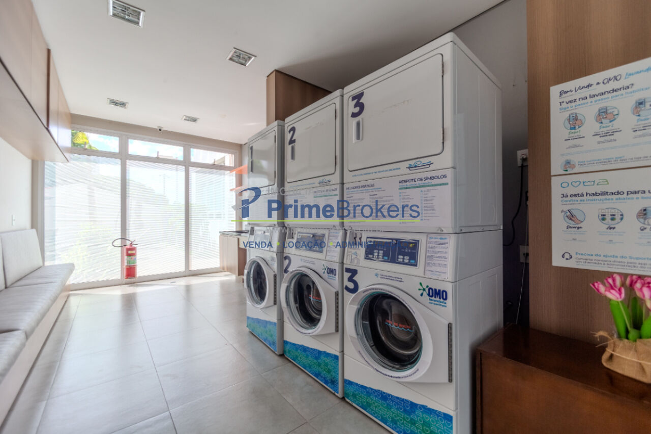 49m² útil bem distribuídos, 1 dormitório, varanda com vista livre, sala ampla integrada à cozinha, lavanderia funcional, água quente a gás, móveis planejados, piso porcelanato, infraestrutura para ar-condicionado