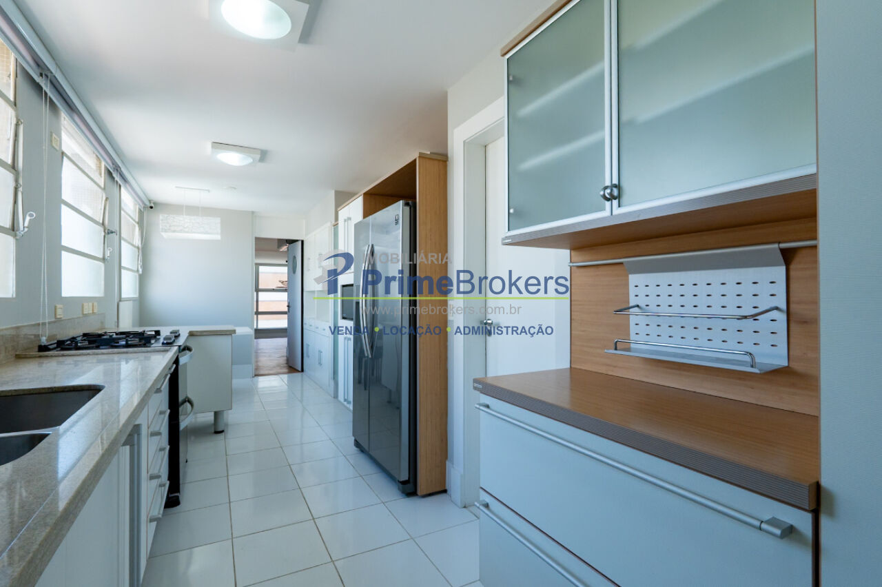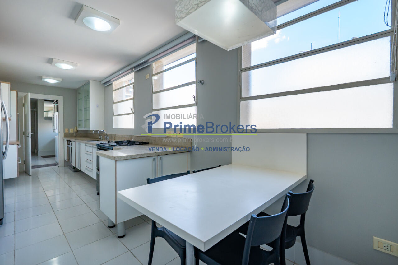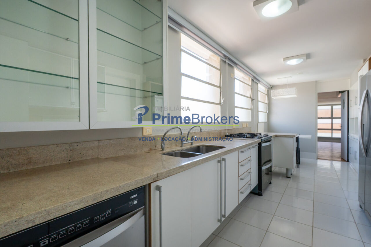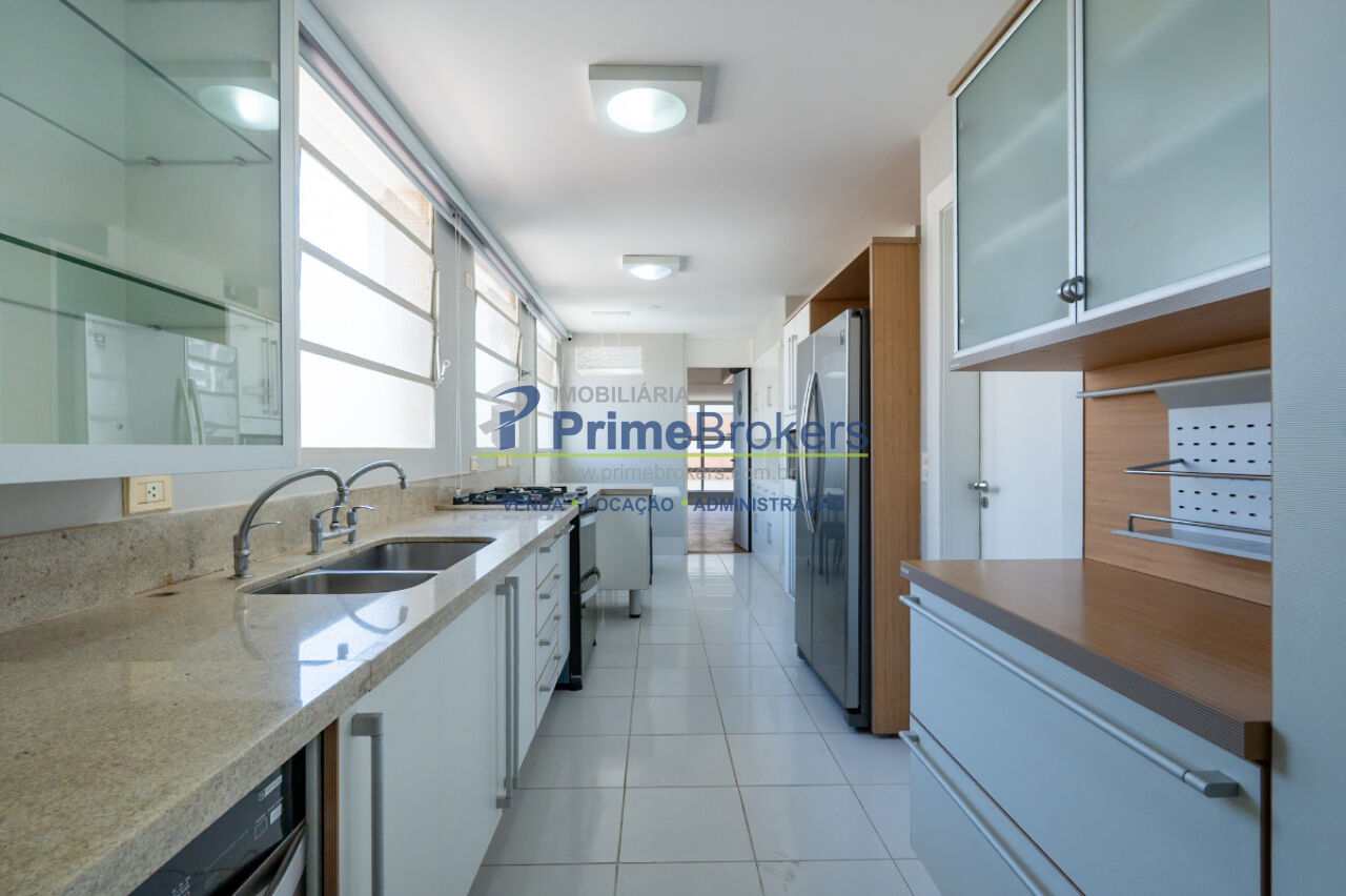 A cozinha assinada pela Kitchens, totalmente equipada e planejada com acabamentos de excelência, complementa o projeto com requinte e funcionalidade para um estilo de vida exclusivo. Ár. serviço completa com dormitório e banheiro para funcionários.