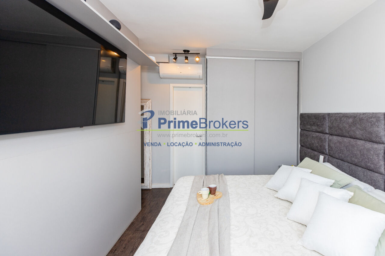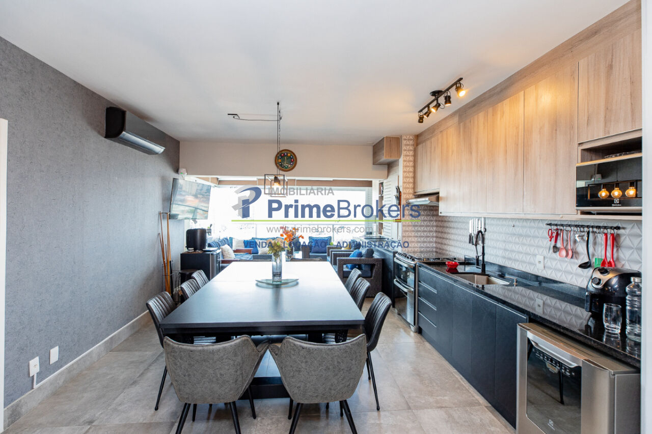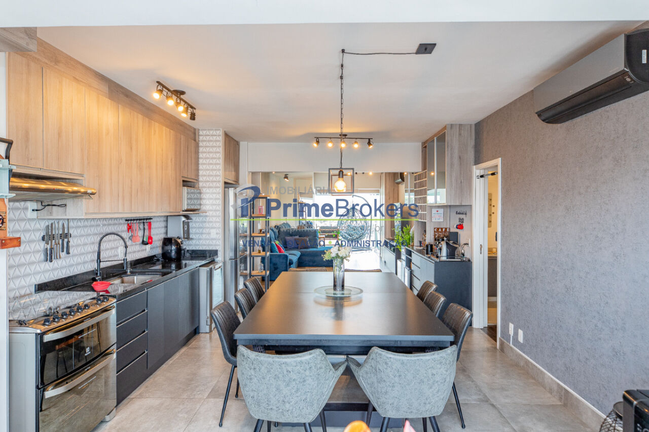 Duas varandas com vista nascente e poente (vidro retrátil), 2 suítes (master com dois banheiros Sr. e Sra. e closet), home office/terceiro quarto, ar condicionado central, cozinha integrada, móveis planejados, janelas teto-chão, piso frio, vista panorâmica, apartamento ampliado (136m²)