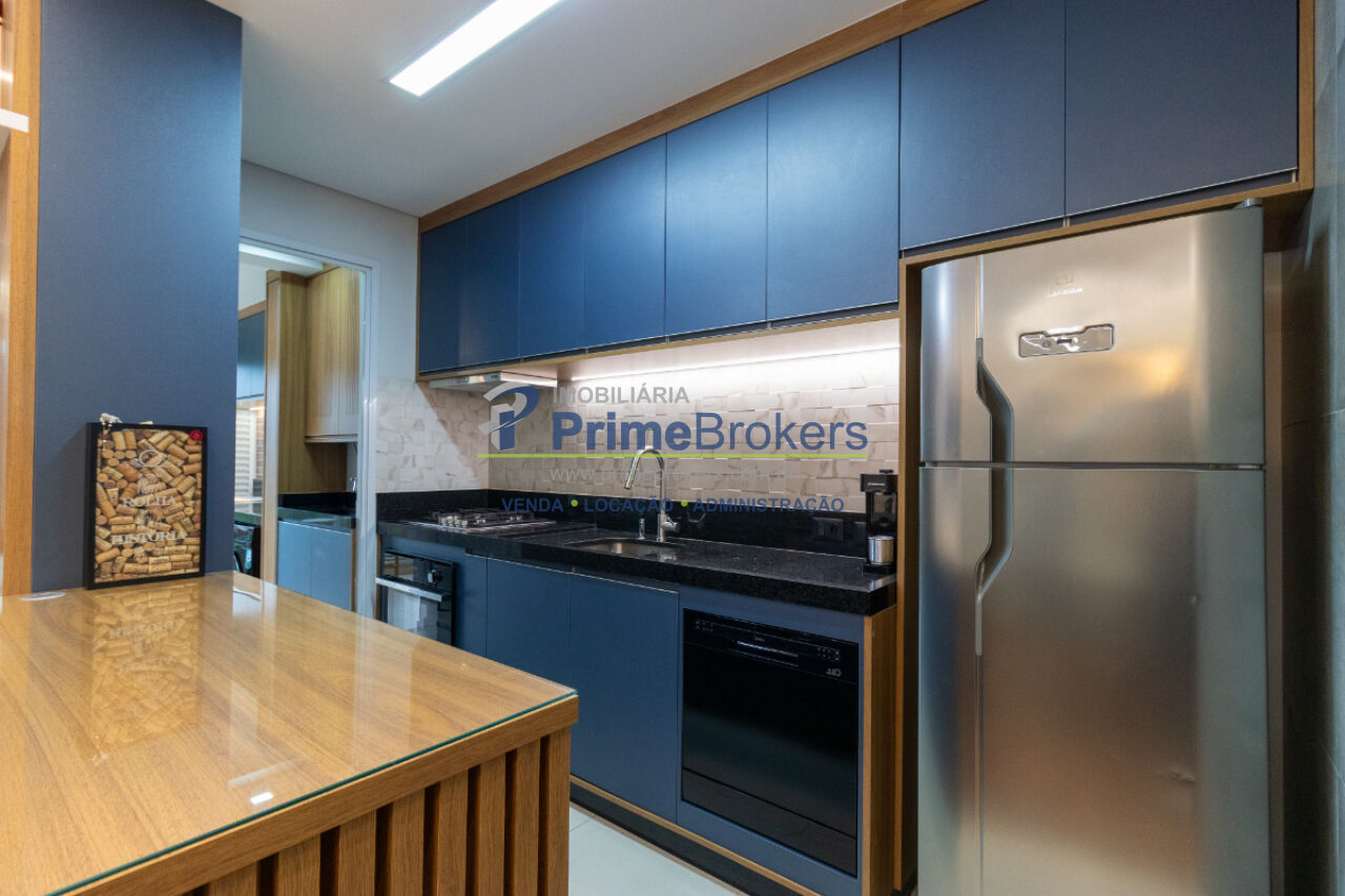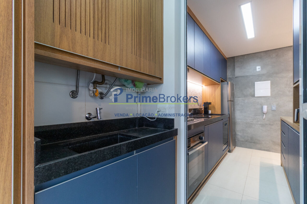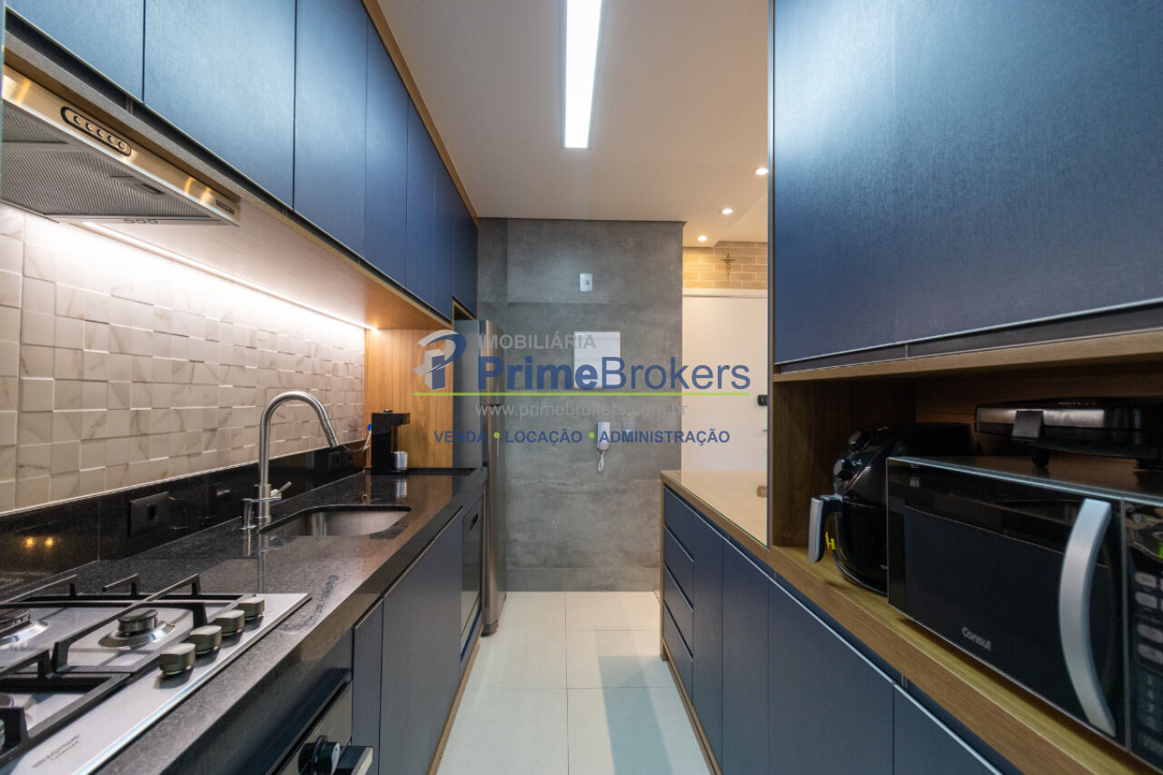 Mobiliado com móveis planejados, suíte, cozinha integrada com espaço gourmet, sacada com churrasqueira, aquecimento central, água quente, piso laminado, vista permanente, área de serviço, gás encanado