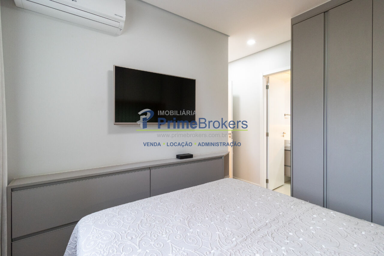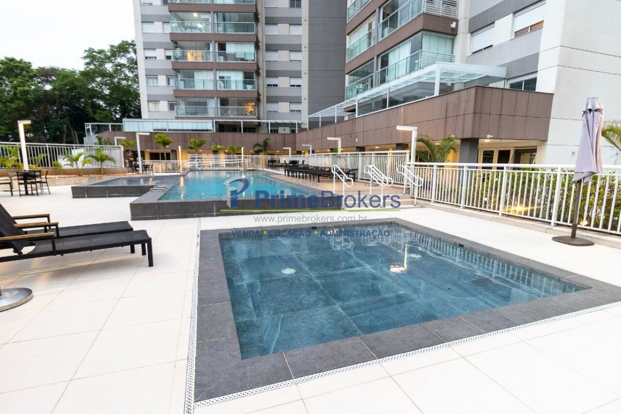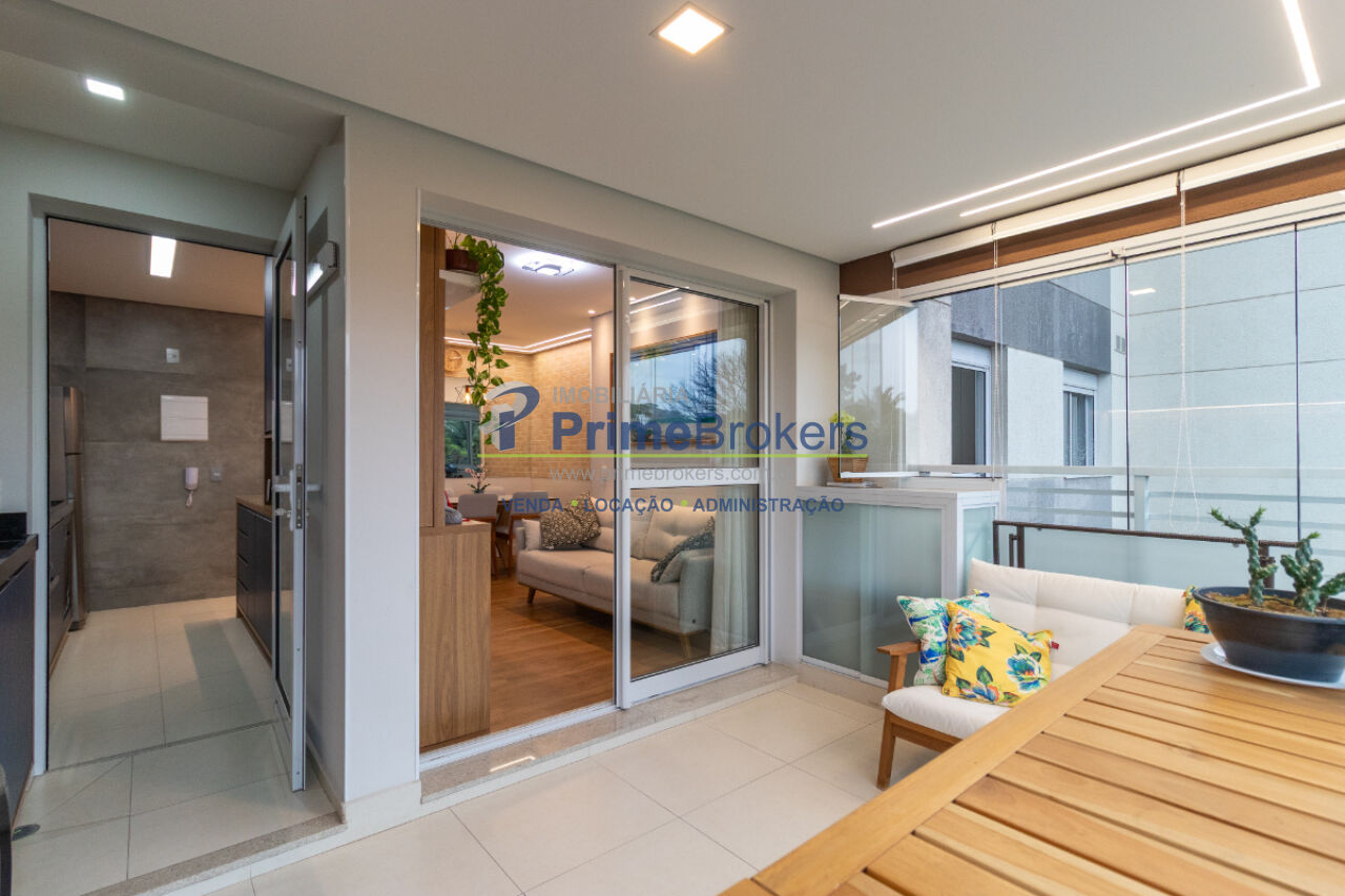 Mobiliado com móveis planejados, suíte, cozinha integrada com espaço gourmet, sacada com churrasqueira, aquecimento central, água quente, piso laminado, vista permanente, área de serviço, gás encanado