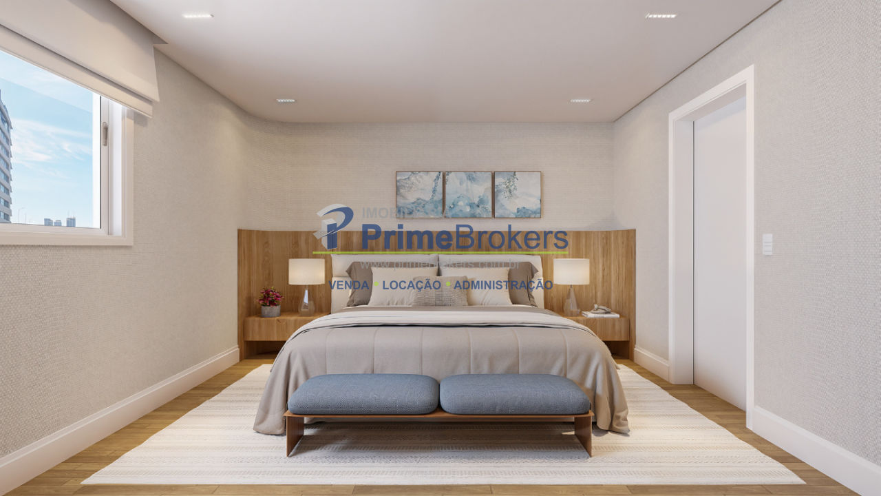 relaxamento. A suíte master é um refúgio: janelas amplas com venezianas automatizadas filtram a luz, criando uma