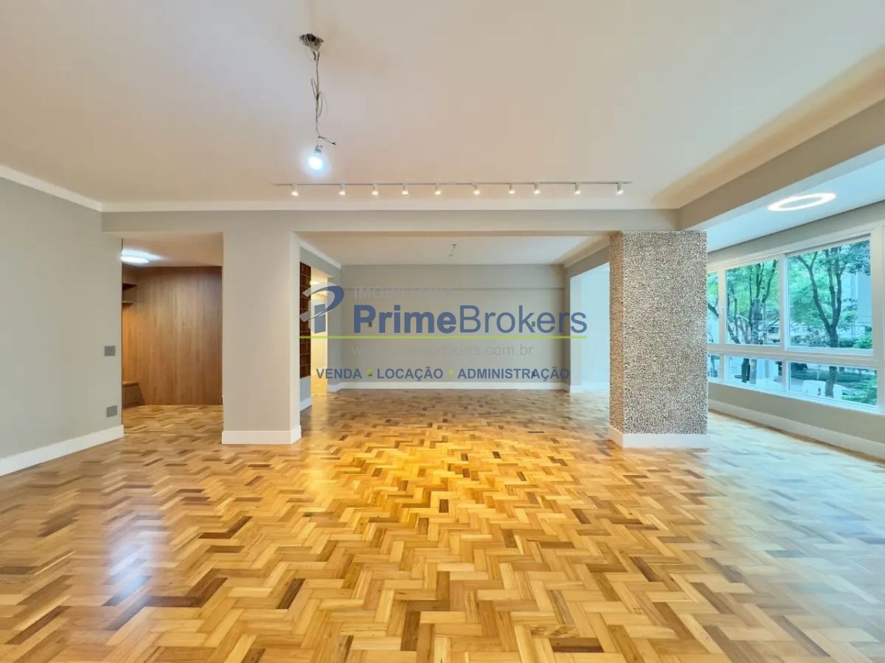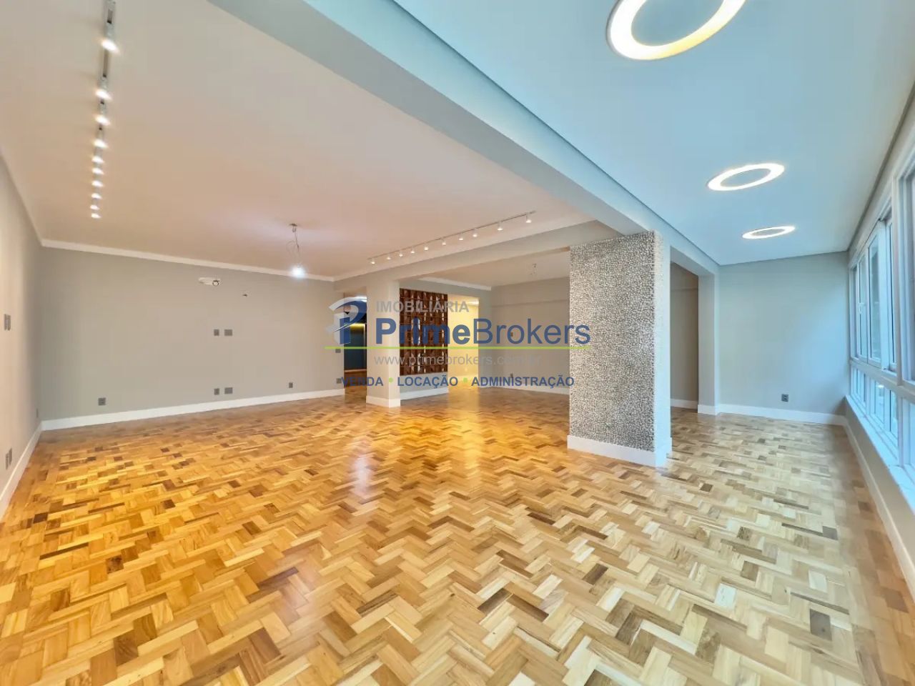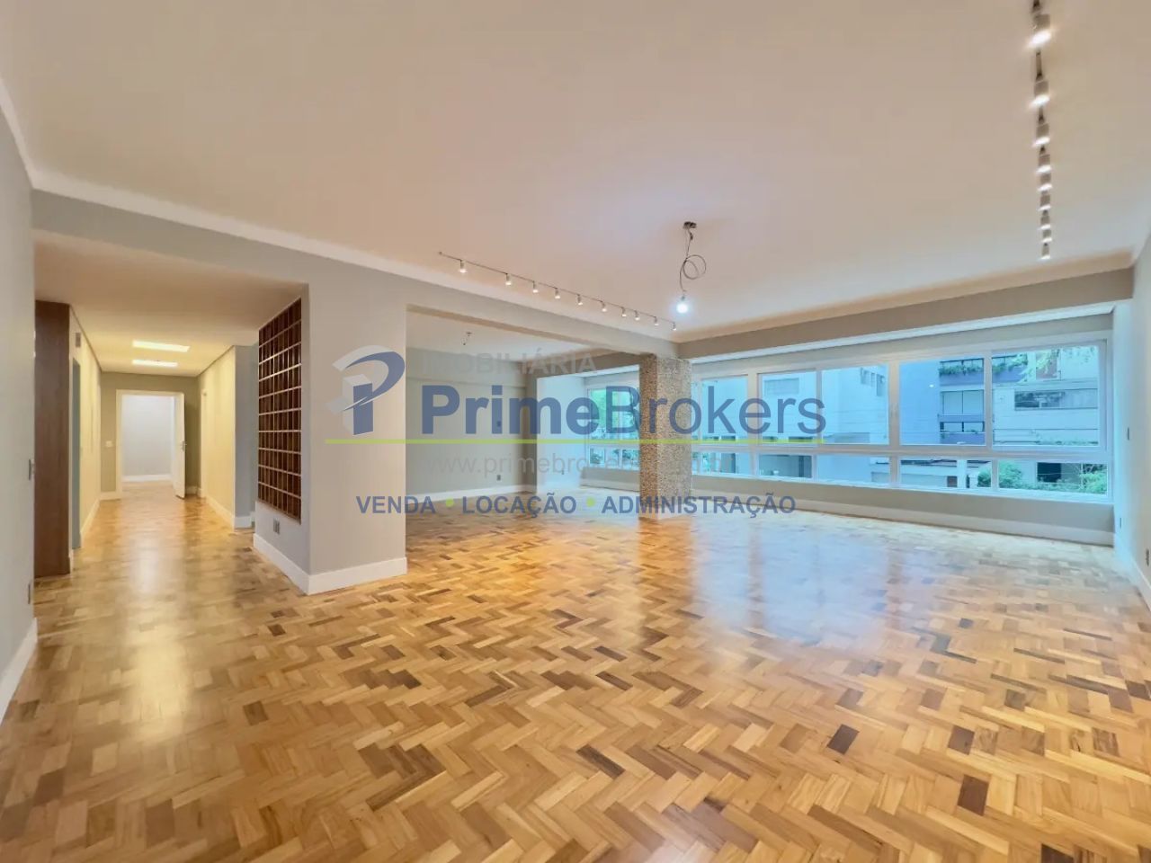 Apartamento totalmente reformado, 253m² de área útil, 4 dormitórios (1 suíte), ambientes amplos com pé-direito alto, janelas enormes anti-ruído, portas blindadas (entrada social e de serviço), piso original restaurado, persianas eletrônicas, banheiros com janelas, 2 vagas de garagem, prédio histórico de 1958