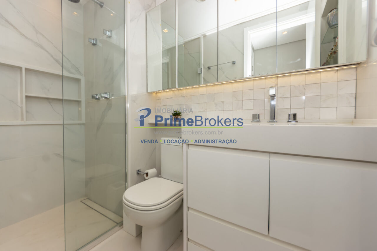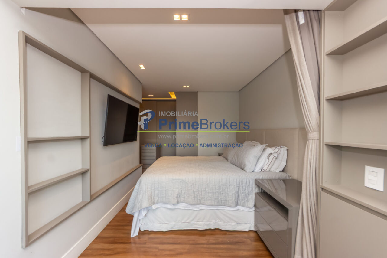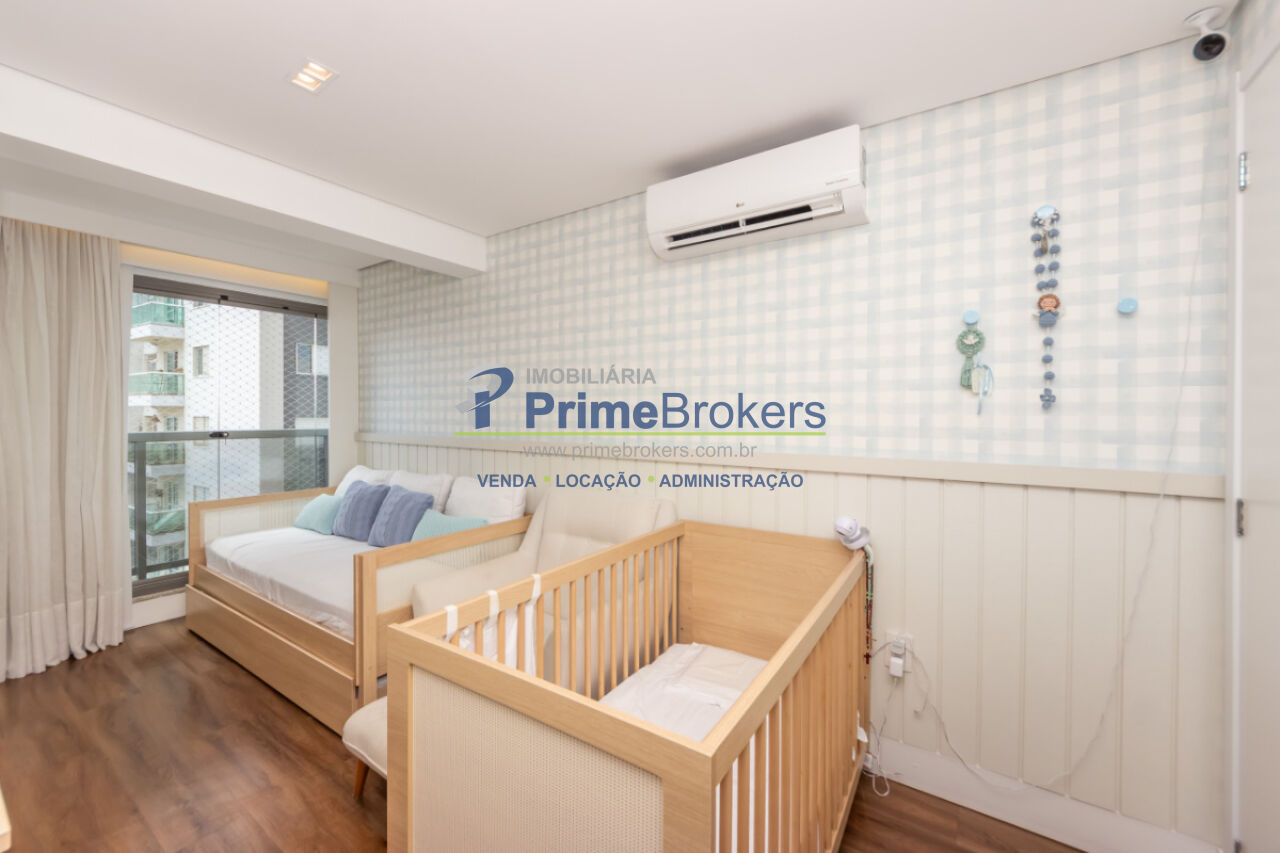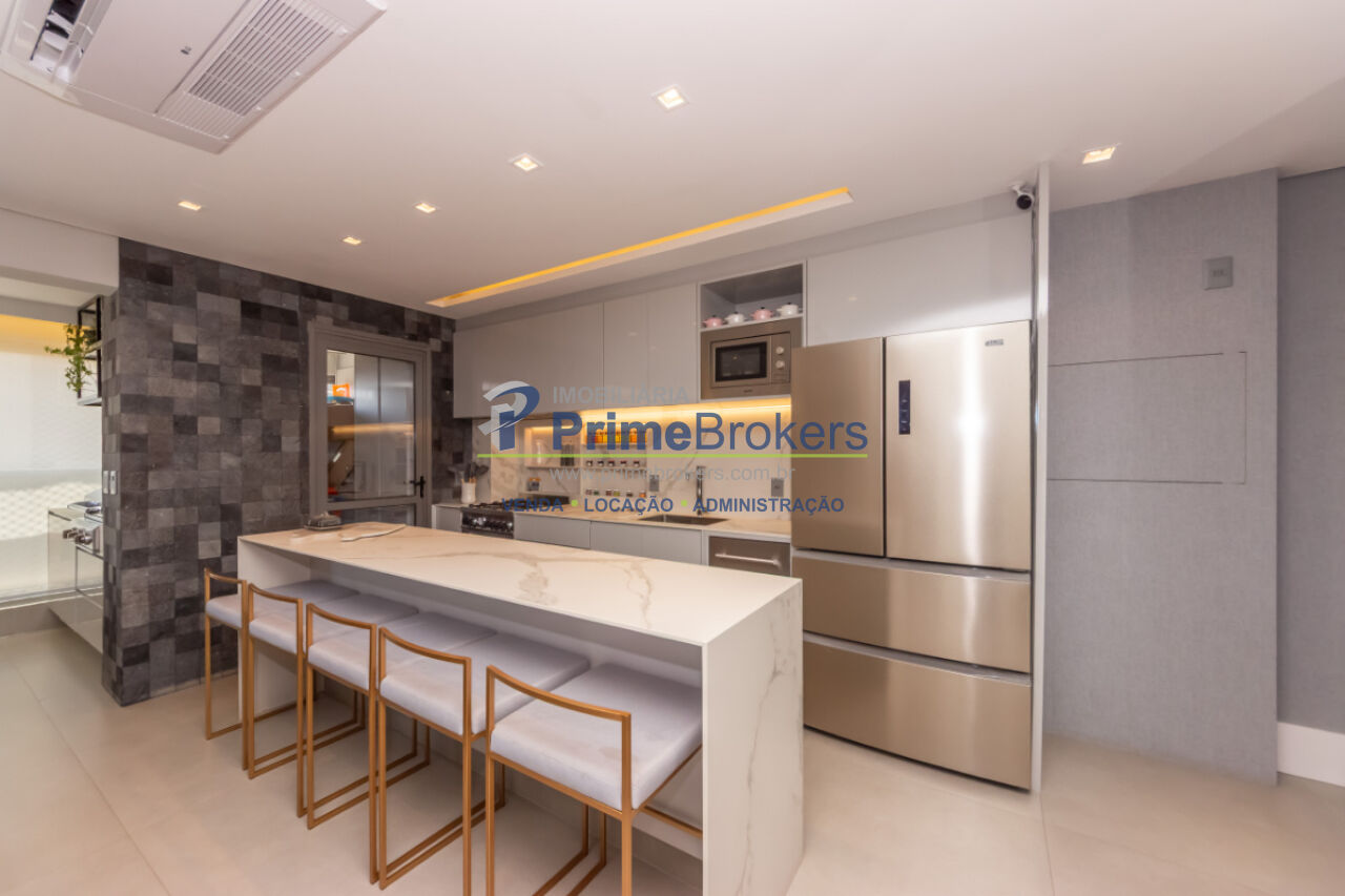 103m², 2 dormitórios sendo 2 suítes, 2 vagas de garagem, totalmente mobiliado e equipado, cozinha gourmet com ilha e eletrodomésticos importados, churrasqueira interna, varanda integrada, piso porcelanato, ar-condicionado K7, aquecimento central, lavabo, closet, água quente