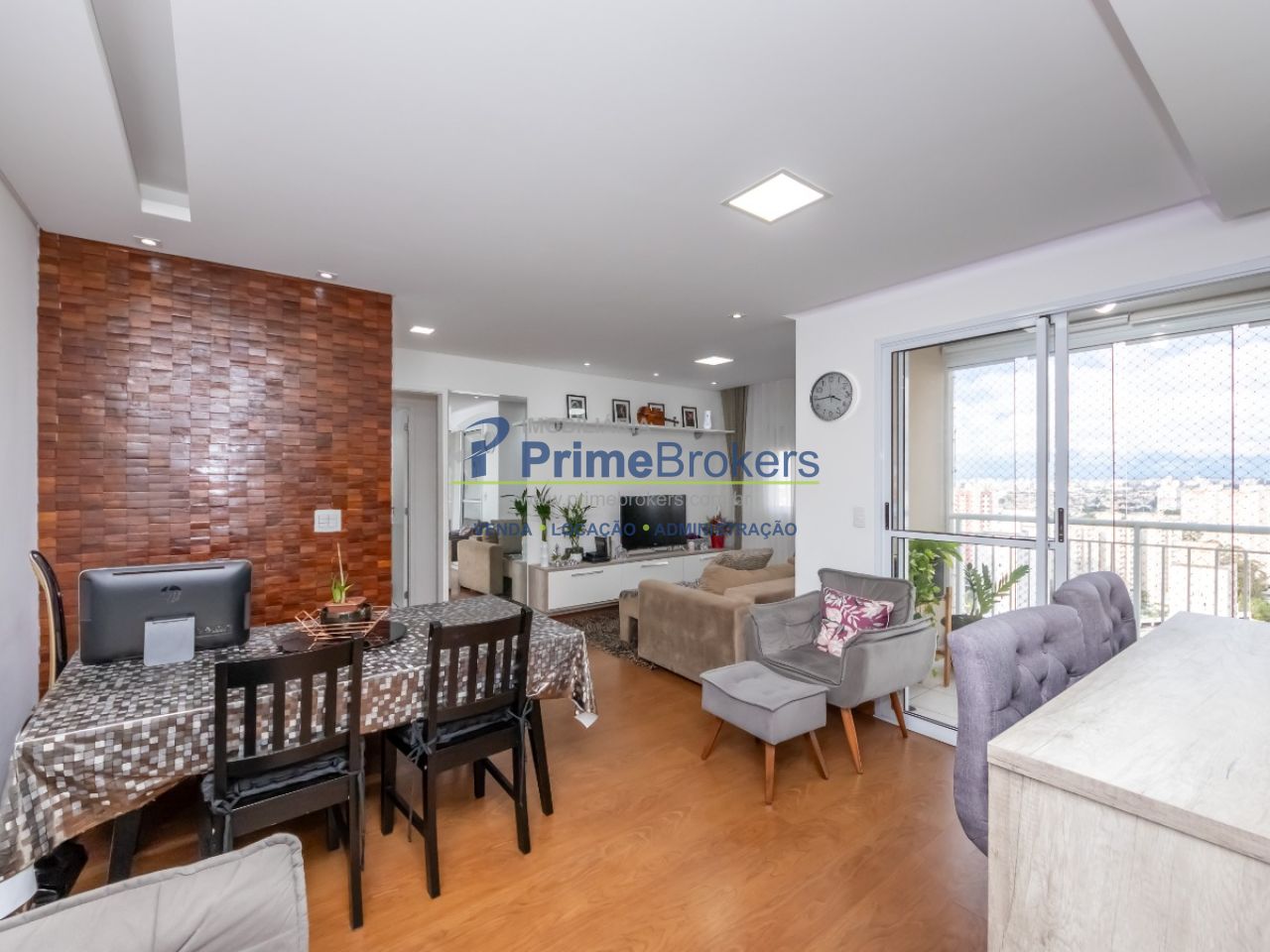 imóvel conta com varanda com vidro e tela. A cozinha é planejada e integrada com a sala.