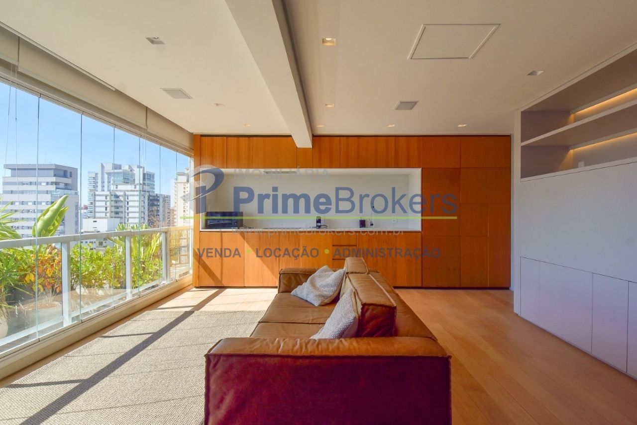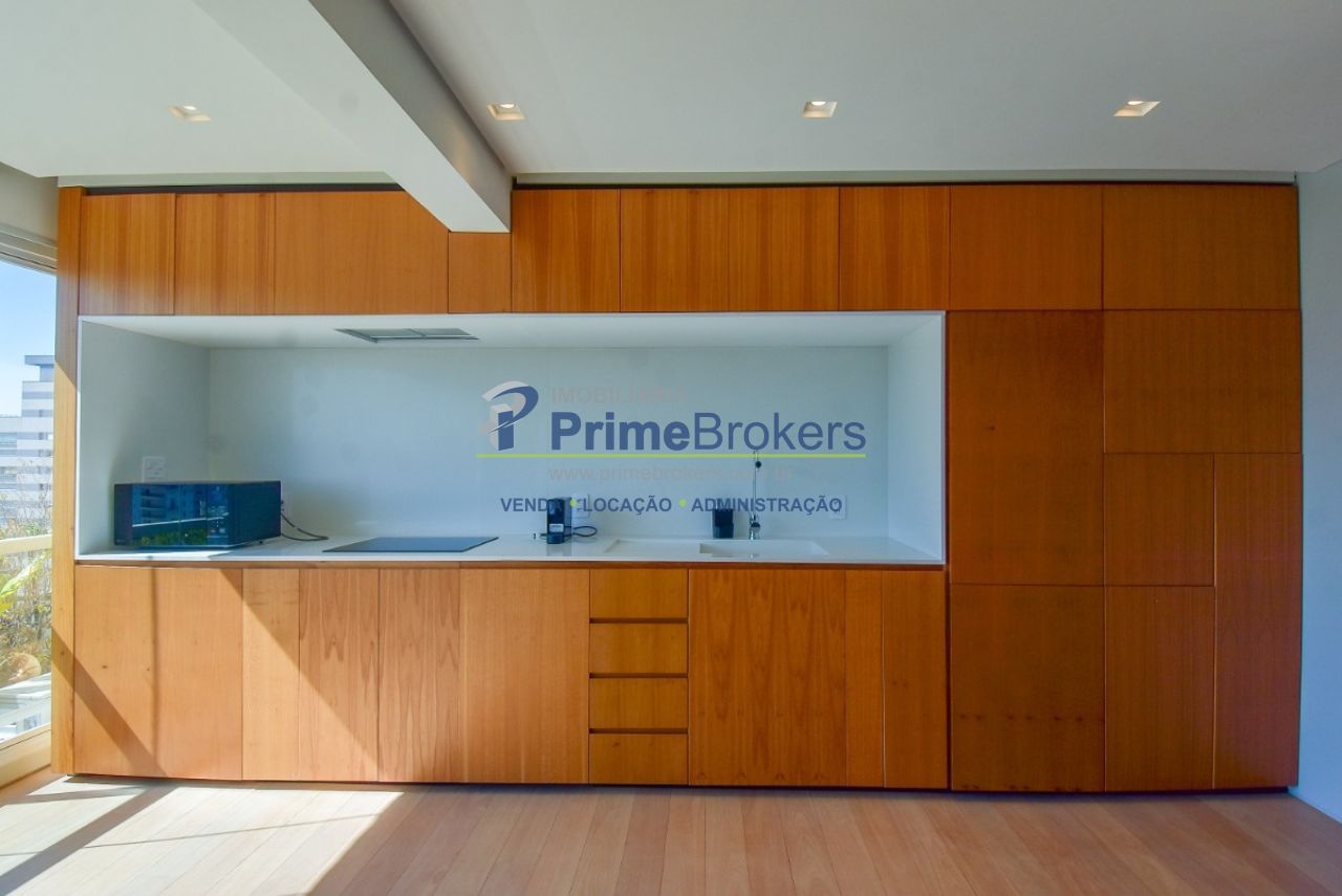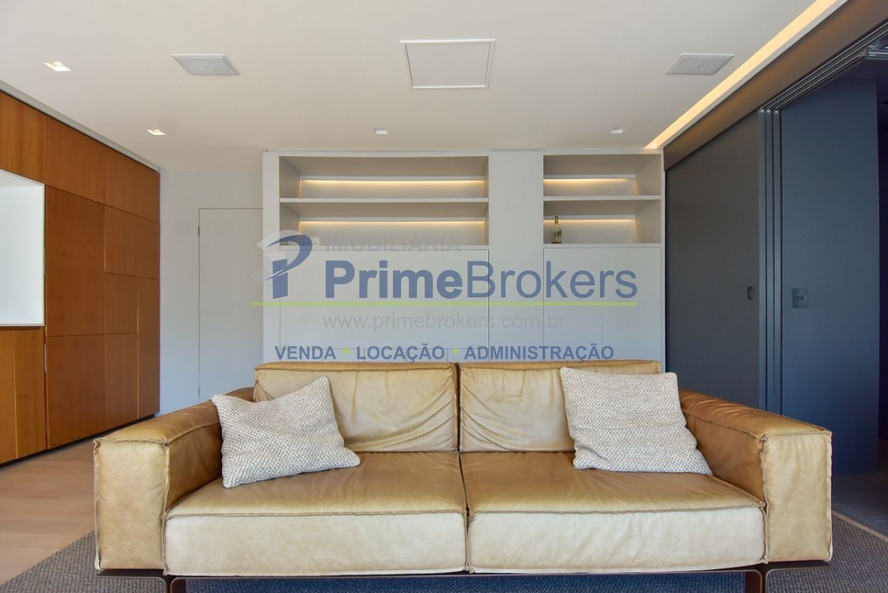 Com uma vista permanente a sala de estar foi fechada em vidro e oferece acesso à varanda aberta, criando um espaço amplo e harmonioso. A sala de estar é generosa, iluminada e conectada a todos os ambientes proporcionando fluidez e sensação de amplitude. O projeto inclui um projetor de teto retrátil e tela para transformar a sala em um Home Theater. A cozinha moderna e integrada conta com armários embutidos de primeira linha que "escondem" a geladeira, o freezer e a máquina de lavar e secar embutidos. Um sofisticado sistema de divisórias permite abrir ou fechar o quarto e integrar ou separar os ambientes. O imóvel conta ainda com 1 vaga de garagem.
