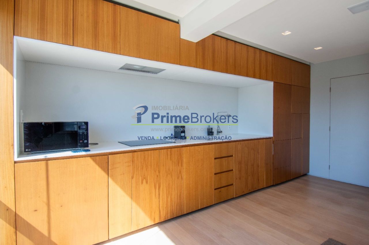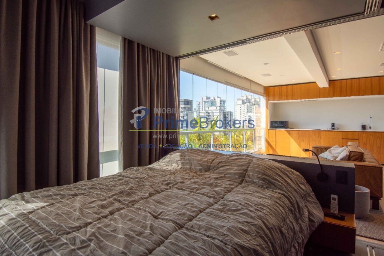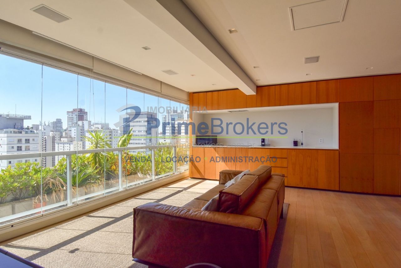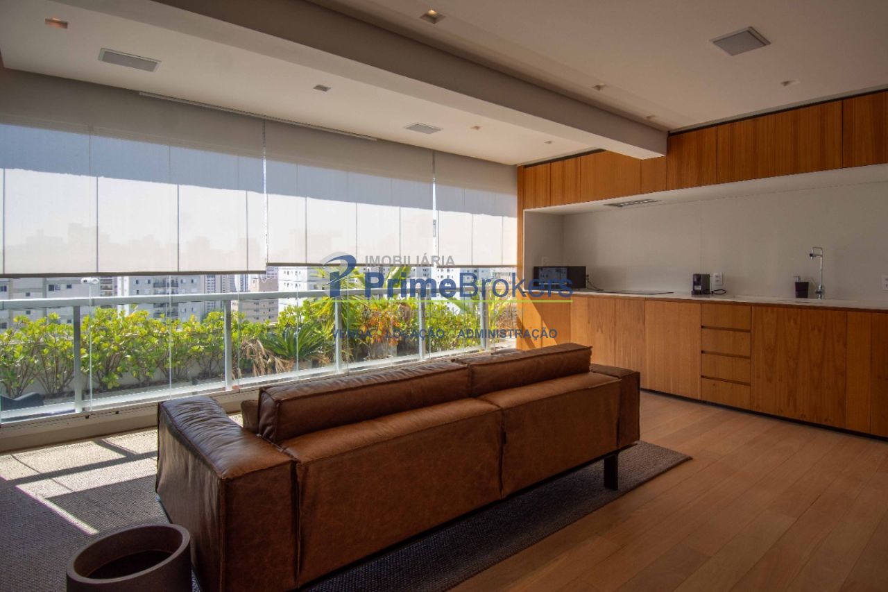 Com uma vista permanente a sala de estar foi fechada em vidro e oferece acesso à varanda aberta, criando um espaço amplo e harmonioso. A sala de estar é generosa, iluminada e conectada a todos os ambientes proporcionando fluidez e sensação de amplitude. O projeto inclui um projetor de teto retrátil e tela para transformar a sala em um Home Theater. A cozinha moderna e integrada conta com armários embutidos de primeira linha que "escondem" a geladeira, o freezer e a máquina de lavar e secar embutidos. Um sofisticado sistema de divisórias permite abrir ou fechar o quarto e integrar ou separar os ambientes. O imóvel conta ainda com 1 vaga de garagem.
