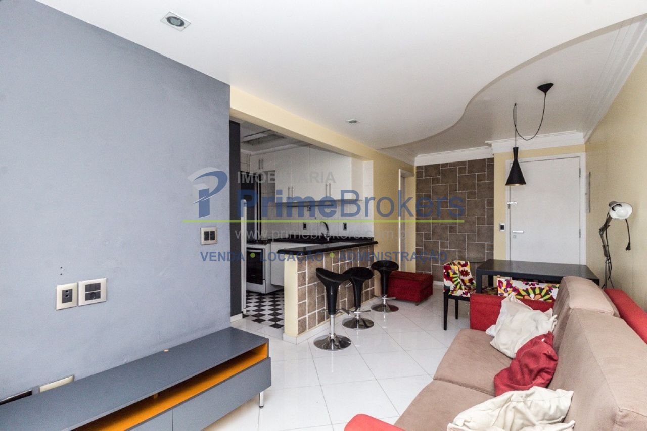 Apartamento mobiliado à venda com 2 dormitórios (1 suíte), 2 banheiros e 2 vagas de garagem em 55m² muito bem aproveitados.