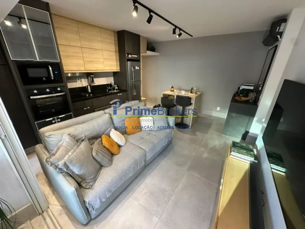 Totalmente mobiliado. Conta com ar-condicionado em todos os ambientes, armários embutidos na cozinha, banheiros e dormitórios, além de piso em porcelanato que valoriza os espaços. A cozinha com copa integrada.
