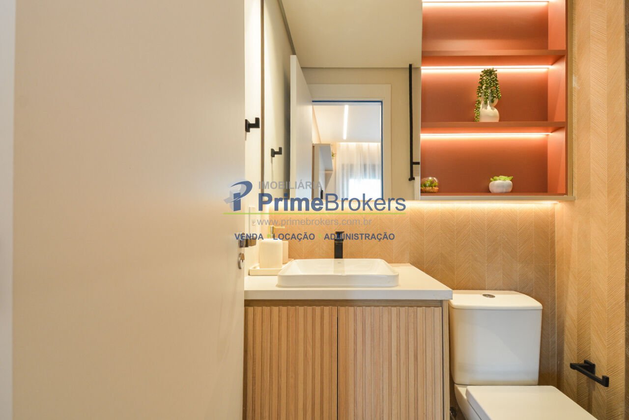 O condomínio oferece uma infraestrutura completa, incluindo ar-condicionado central, elevadores social e de serviço, portaria 24 horas e segurança. Os moradores podem desfrutar de diversas áreas de lazer, com jardim, salão de festas, churrasqueira e um espaço gourmet.