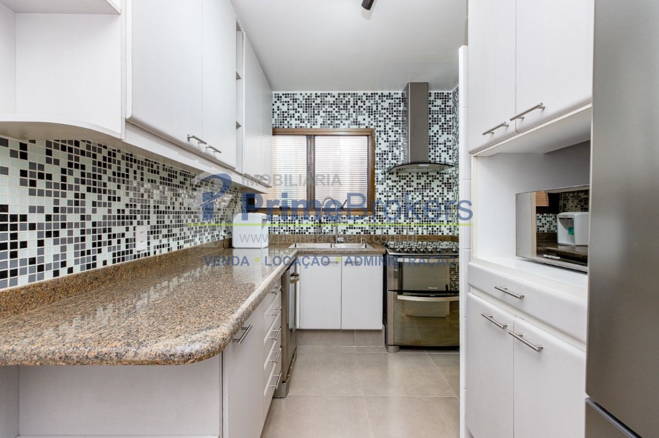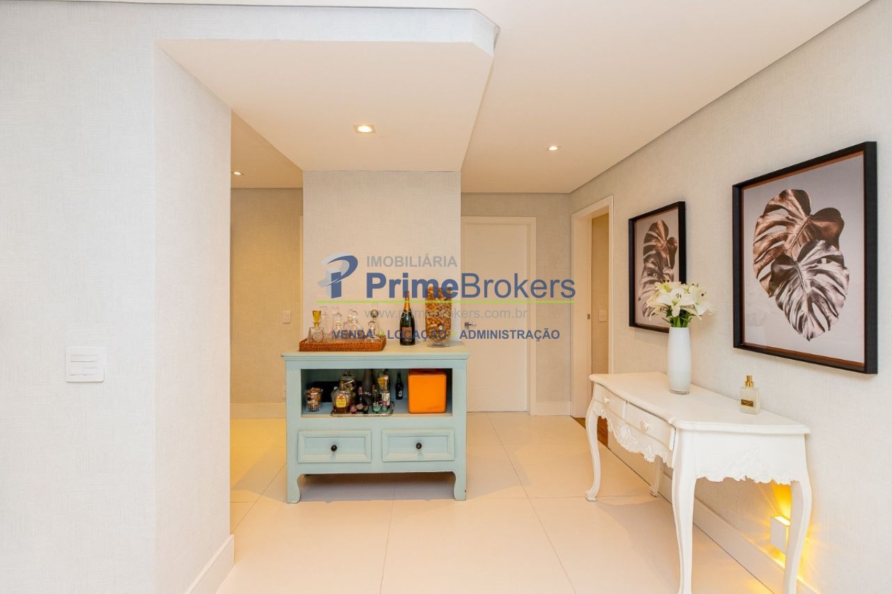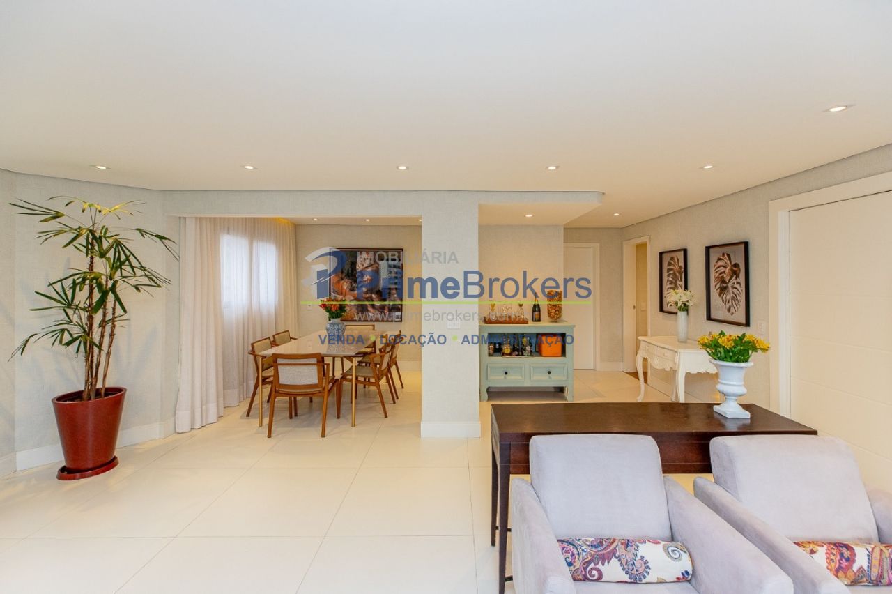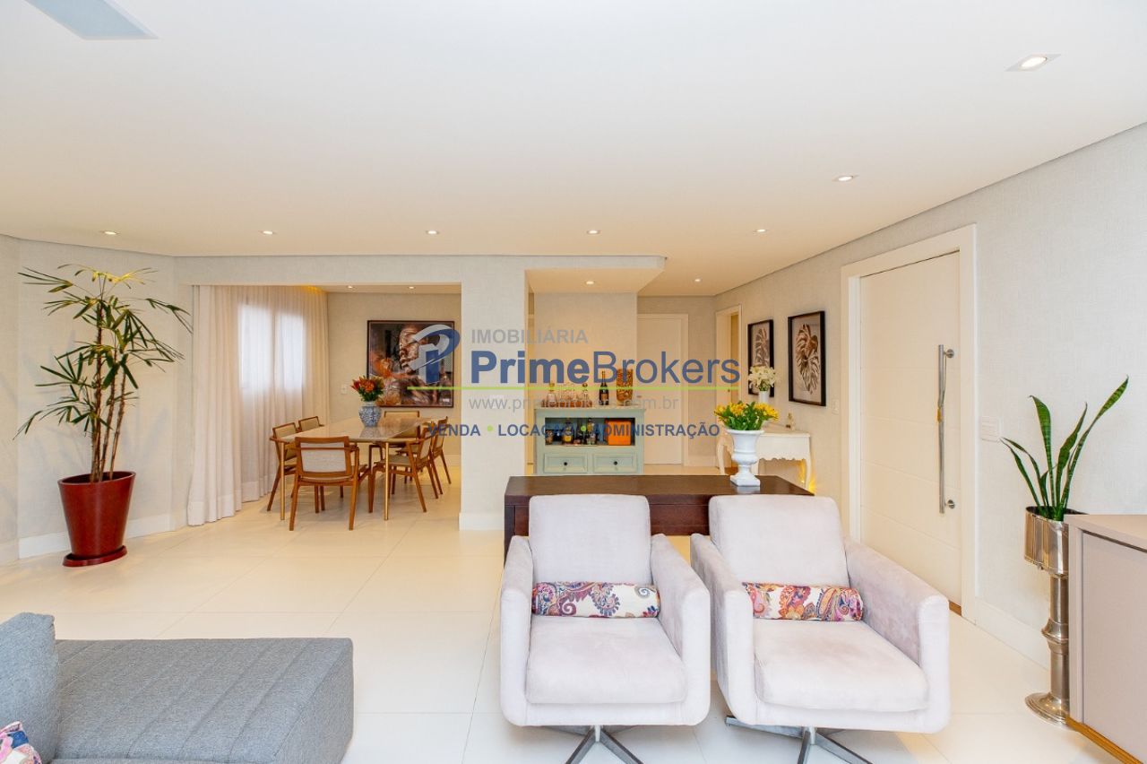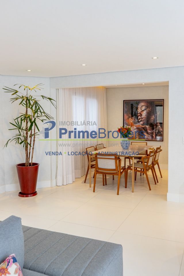 O requinte se inicia logo na entrada por um amplo living clássico com excelente iluminação natural e um jogo de luzes ambientes em cada espaço oferecendo um especial aconchego. A sala de jantar se comunica com uma bela cozinha, equipada com armários planejados de nobre marcenaria!