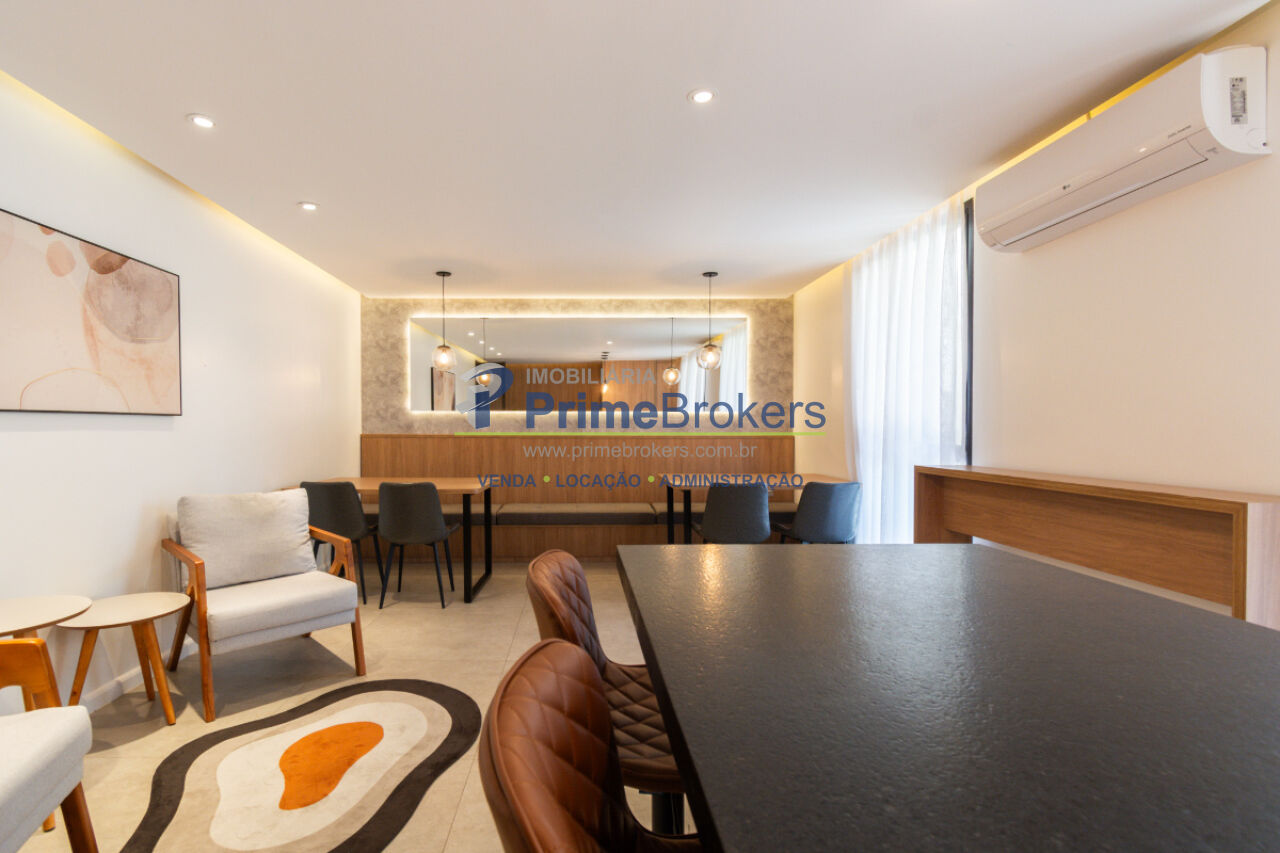 Apartamento de 45m² no Itaim Bibi, com 1 suíte e sacadas na sala e no quarto, garantindo vista livre e iluminação natural. Possui cozinha separada, área de serviço, ar-condicionado no quarto e infra para sala, chuveiro a gás e 1 vaga. Oportunidade de morar no coração de SP.