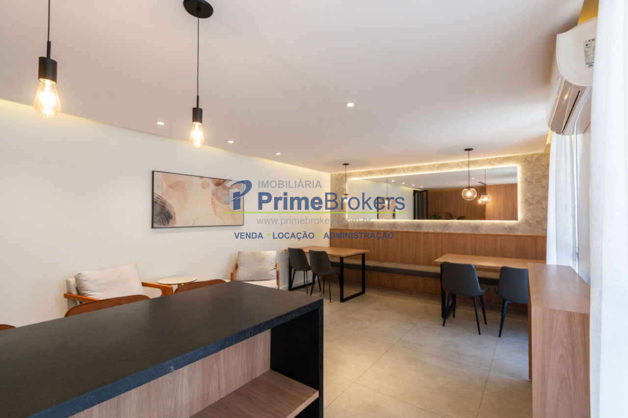 45m² de área útil, 1 dormitório (suíte), sacada na sala e no quarto, vista livre e ventilação, ar-condicionado no quarto, infraestrutura para ar na sala, chuveiro a gás, cozinha separada com área de serviço, acabamentos em cerâmica, 1 vaga de garagem