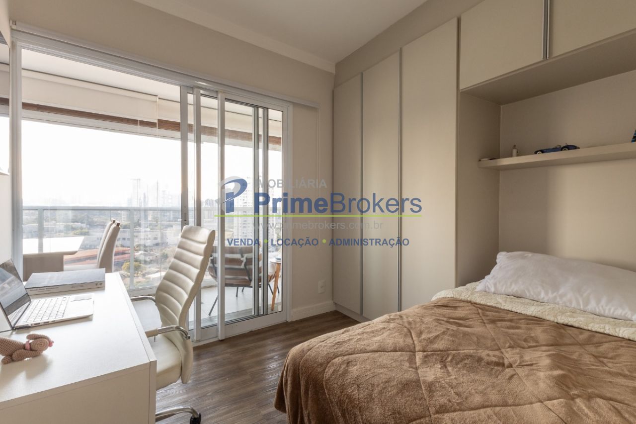 Apresento este belíssimo apartamento de 75m², totalmente mobiliado e decorado, à venda no formato porteira fechada. Unidade com face norte, extremamente iluminada e ventilada, localizada no 11º andar com vista livre e permanente para a icônica Ponte Estaiada.