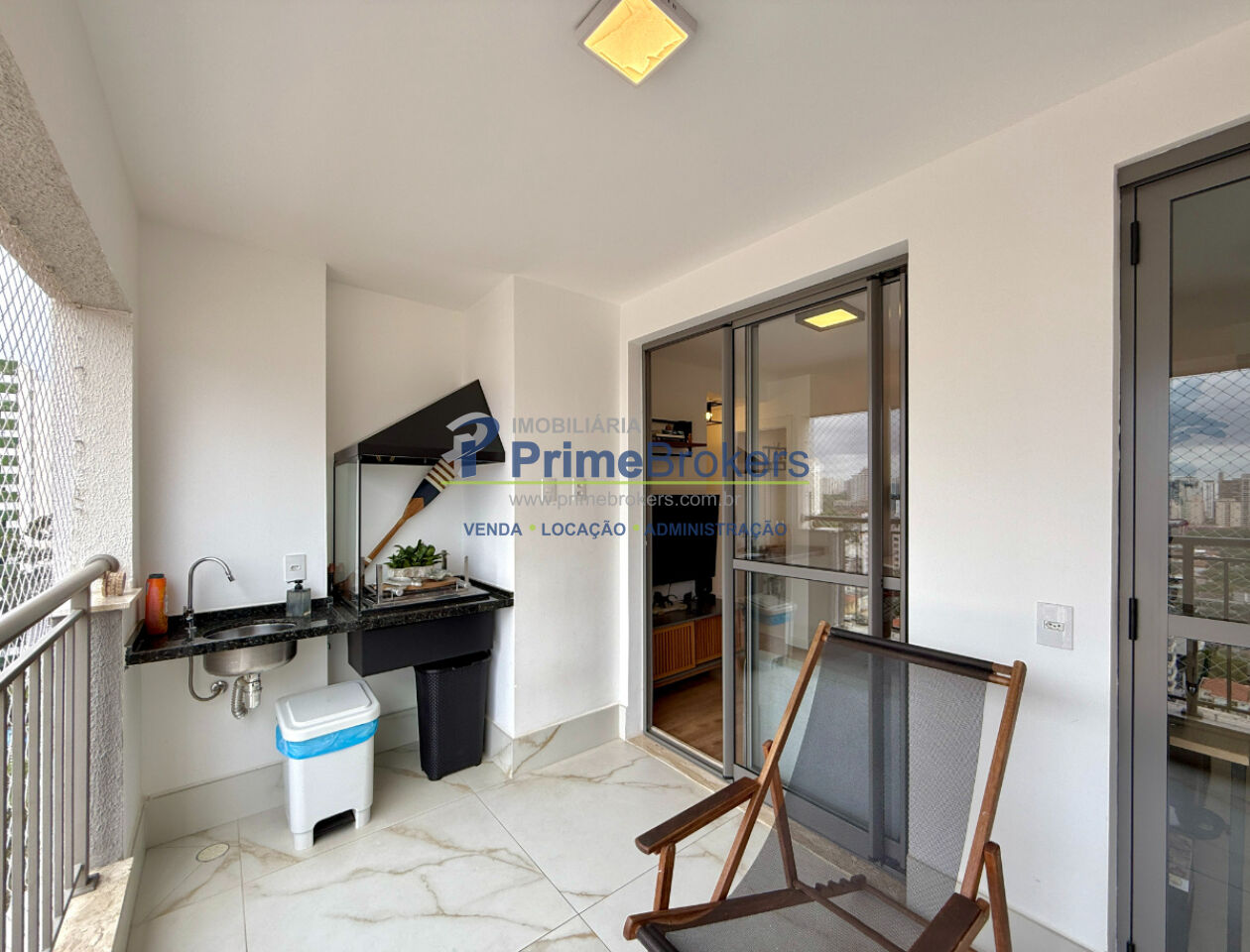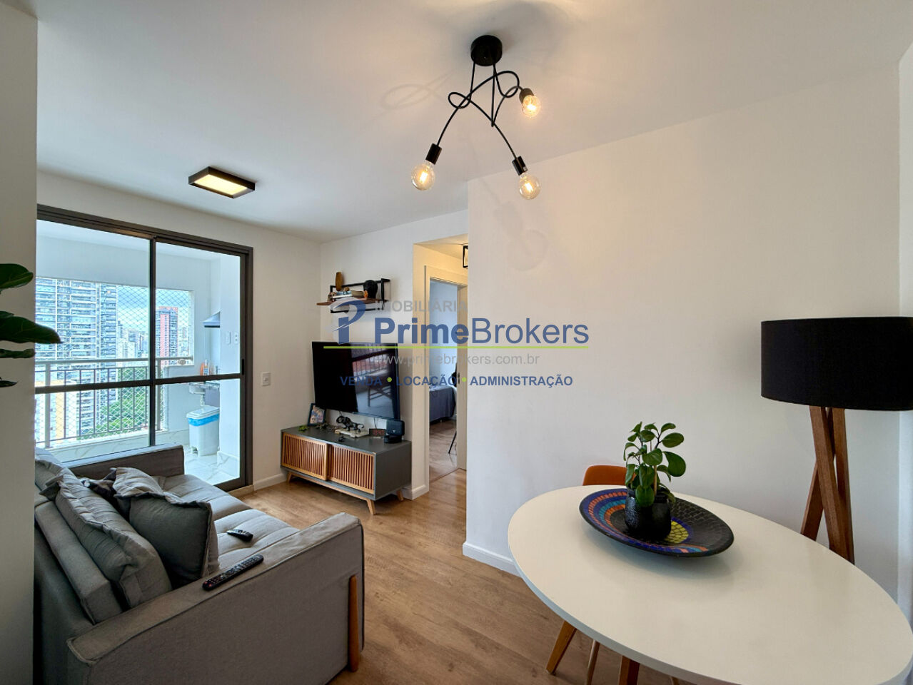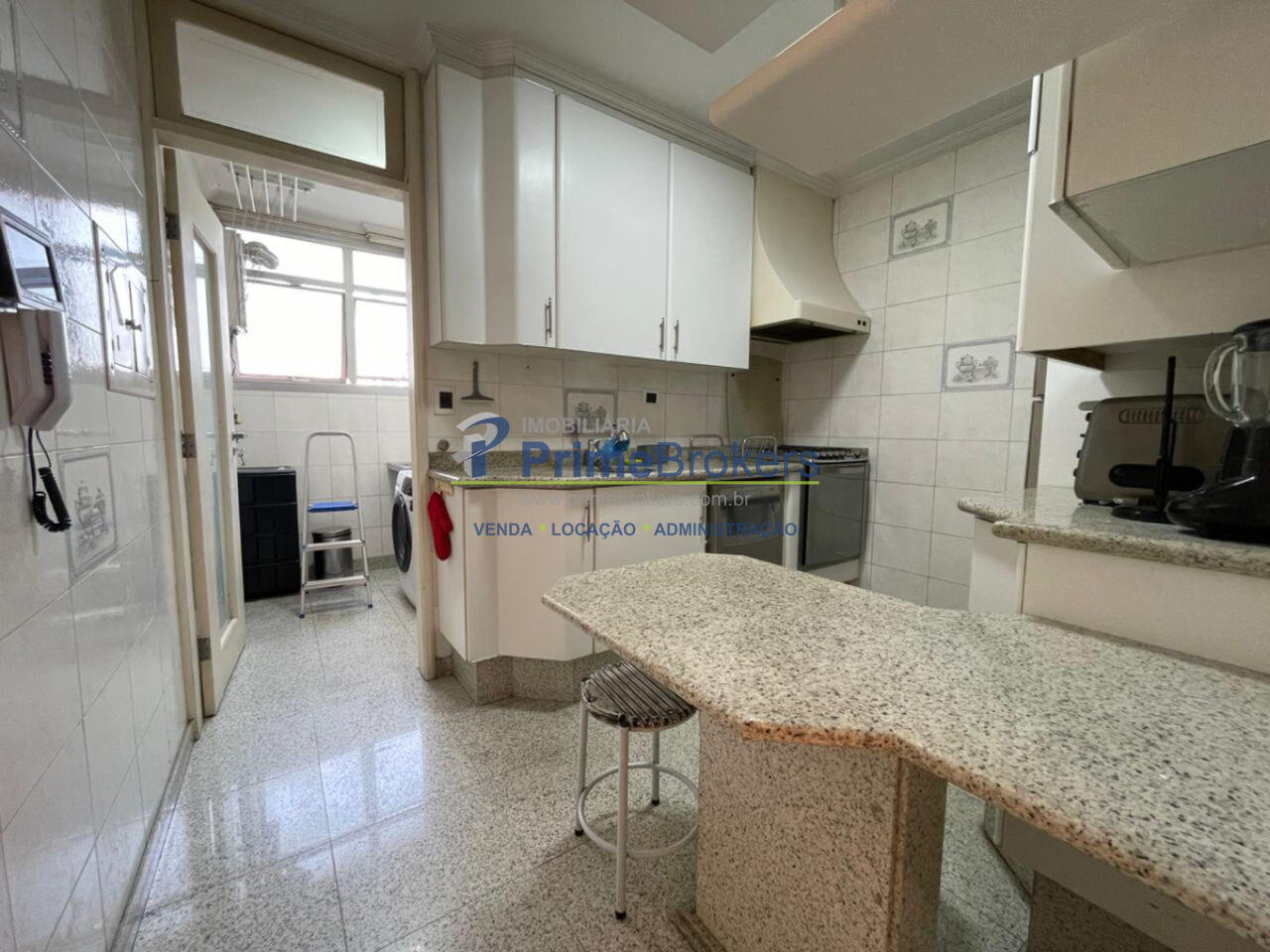A sala é bem iluminada e ventilada. A cozinha possui armários embutidos, e a área de serviço integrada com banheiro de