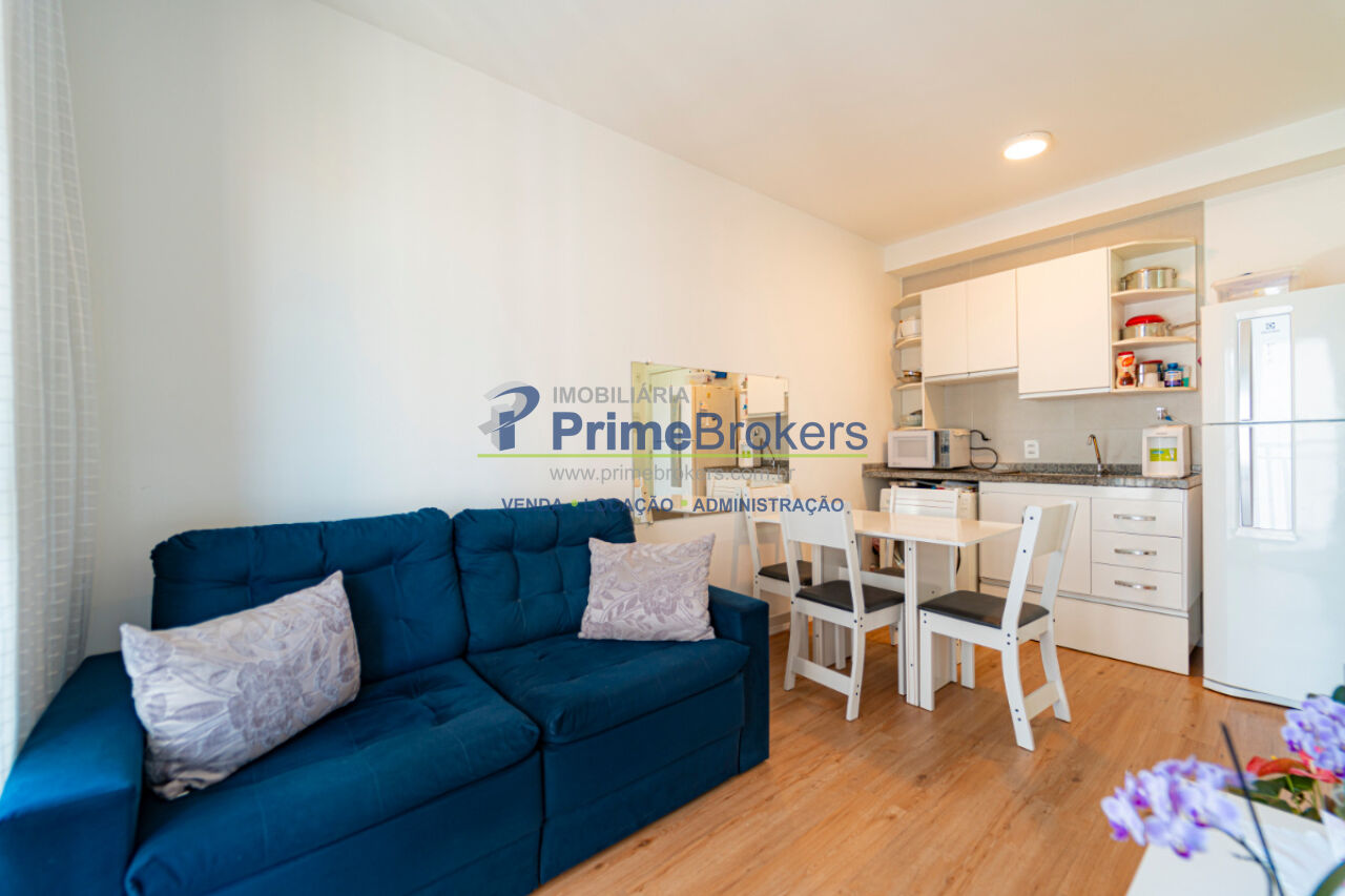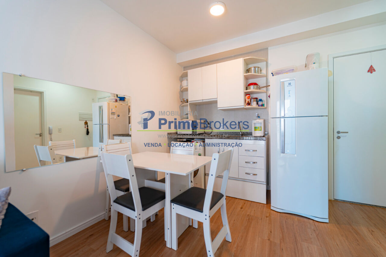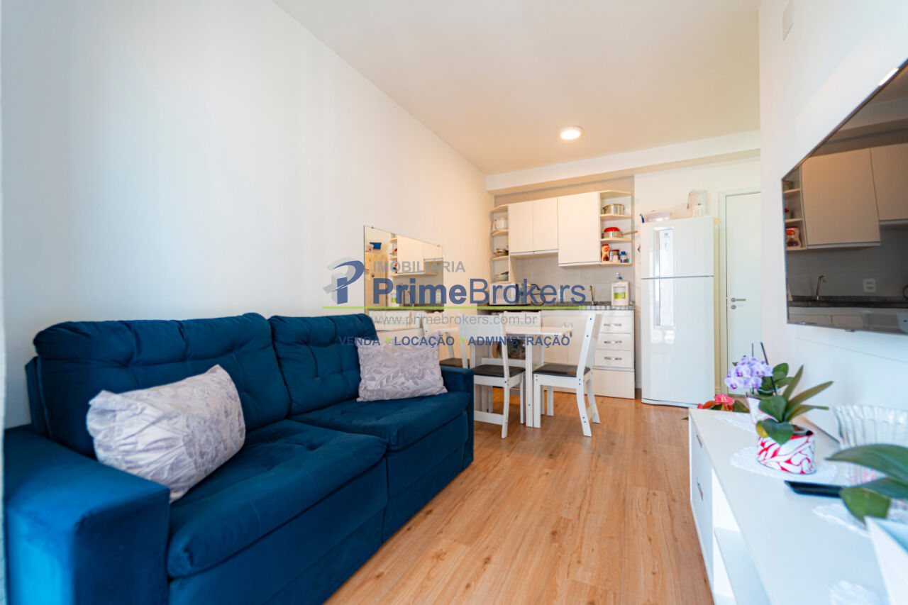 29m², 1 dormitório, 1 banheiro, 1 vaga determinada, 16º andar, ambientes integrados, varanda com vista, armários planejados na cozinha, mobiliado, infraestrutura para ar-condicionado, gás encanado, projeto moderno com excelente aproveitamento de espaço, pronto para morar