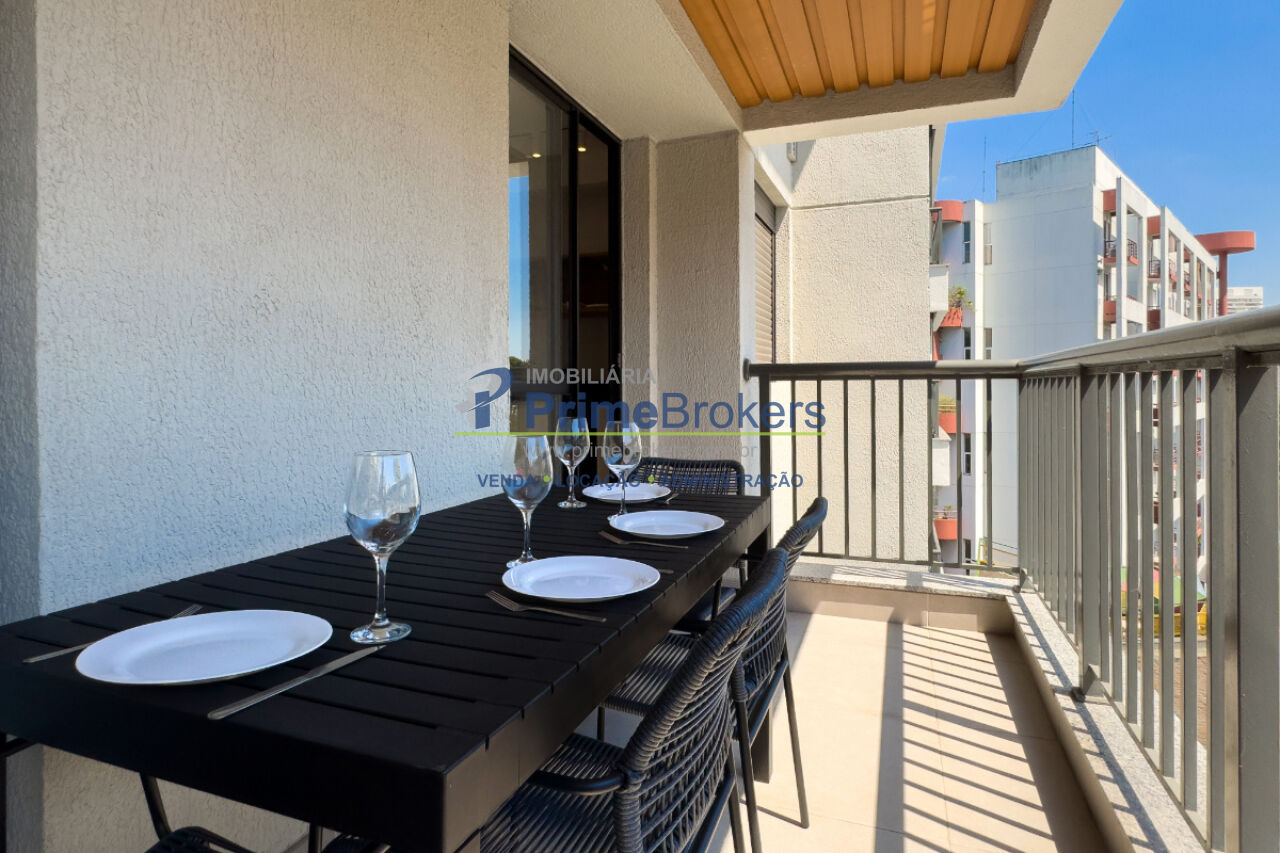 A cozinha é planejada, com armários bem distribuídos que otimizam o espaço e facilitam a rotina. A sacada é um diferencial importante, proporcionando ventilação natural, boa iluminação e uma agradável sensação de amplitude.