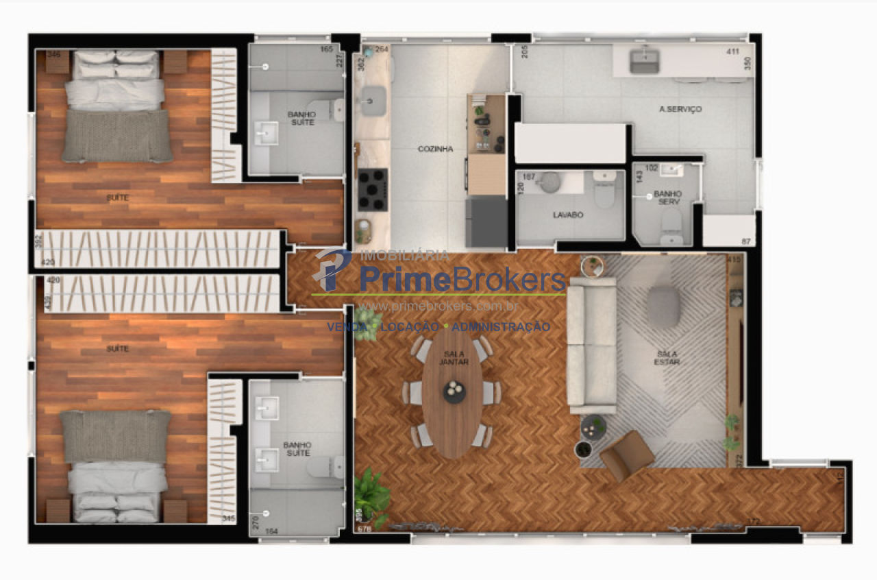 O apartamento será entregue com marcenaria (cozinha, área de serviço e banheiros), aquecedor a gás, cooktop, coifa e forno.