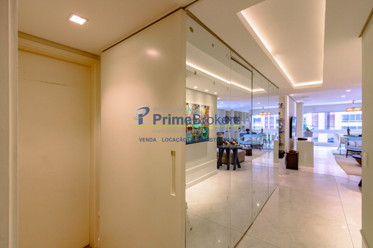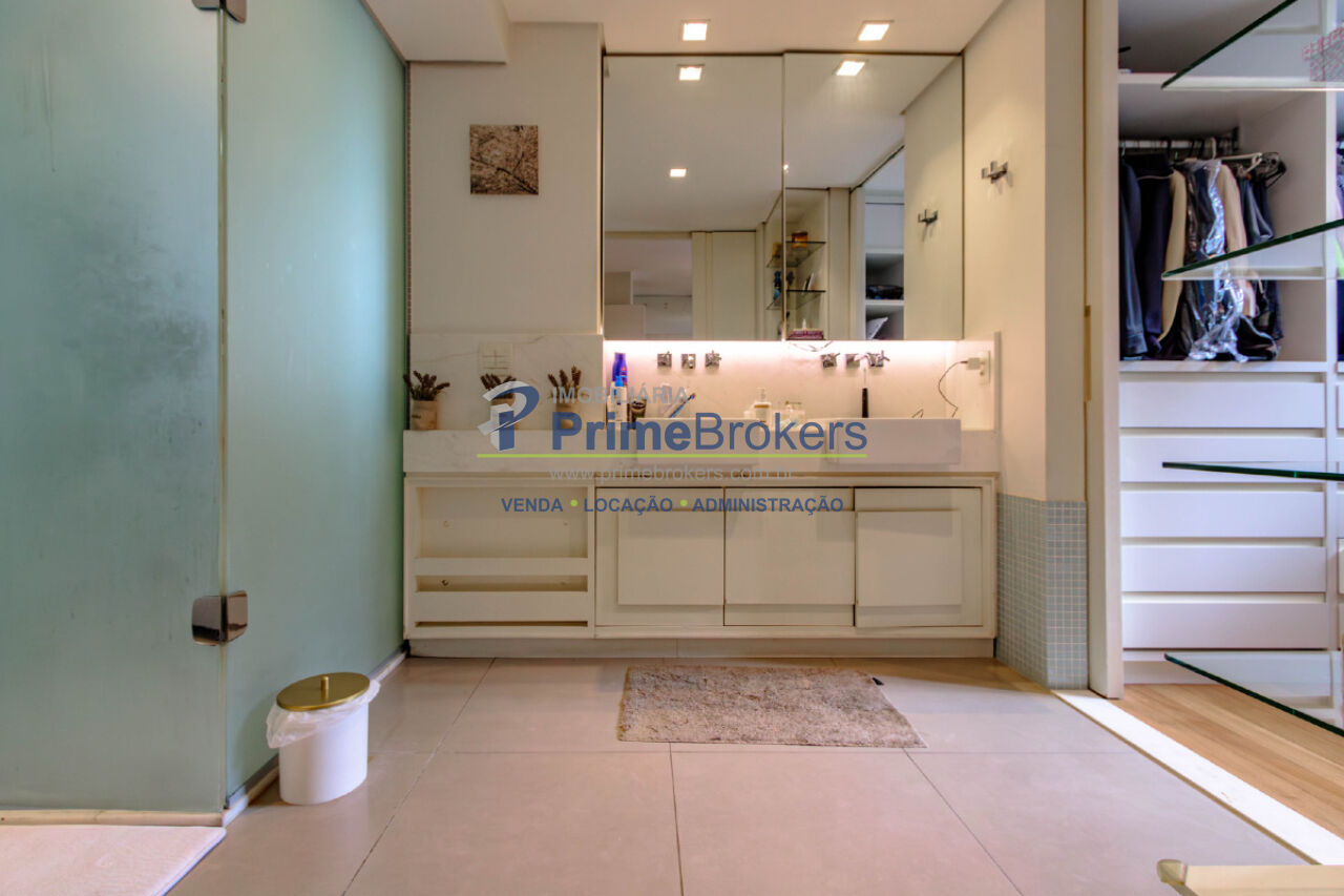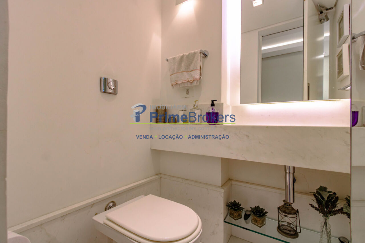 Hall social privativo, hidráulica e elétrica atualizadas, ar-condicionado em todos os ambientes, closet, lavabo, cozinha integrada, banheiro de serviço, área de serviço, quarto de serviço