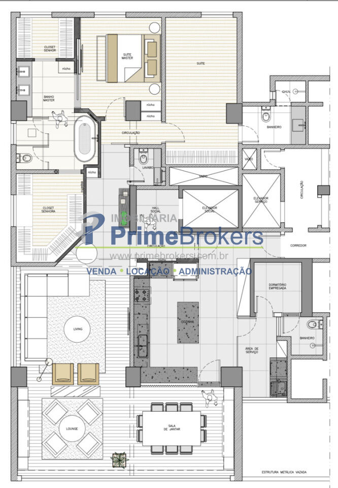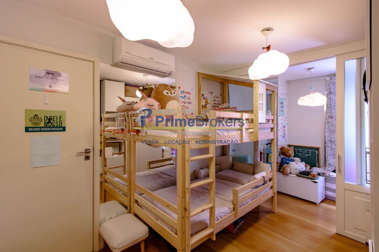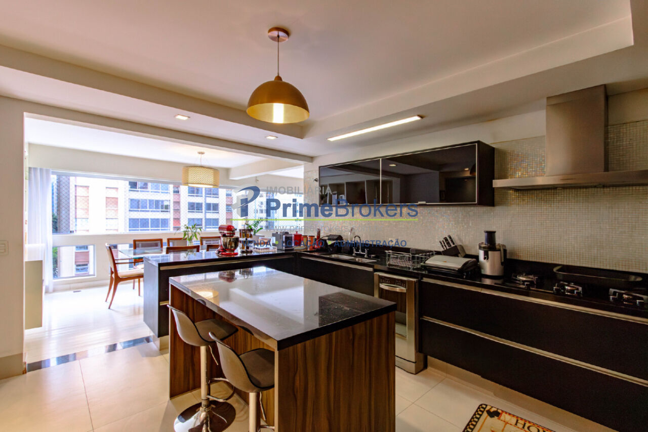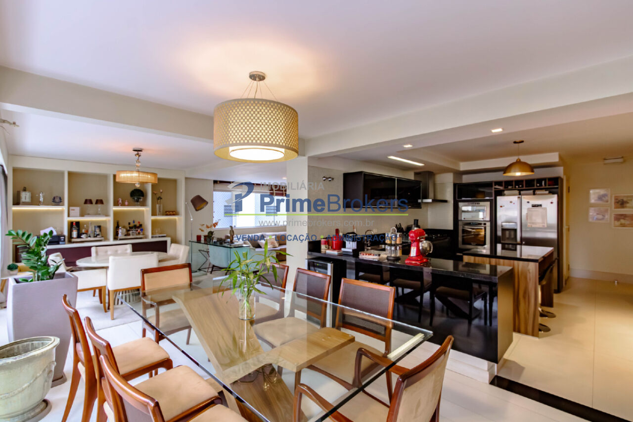 Hall social privativo, hidráulica e elétrica atualizadas, ar-condicionado em todos os ambientes, closet, lavabo, cozinha integrada, banheiro de serviço, área de serviço, quarto de serviço