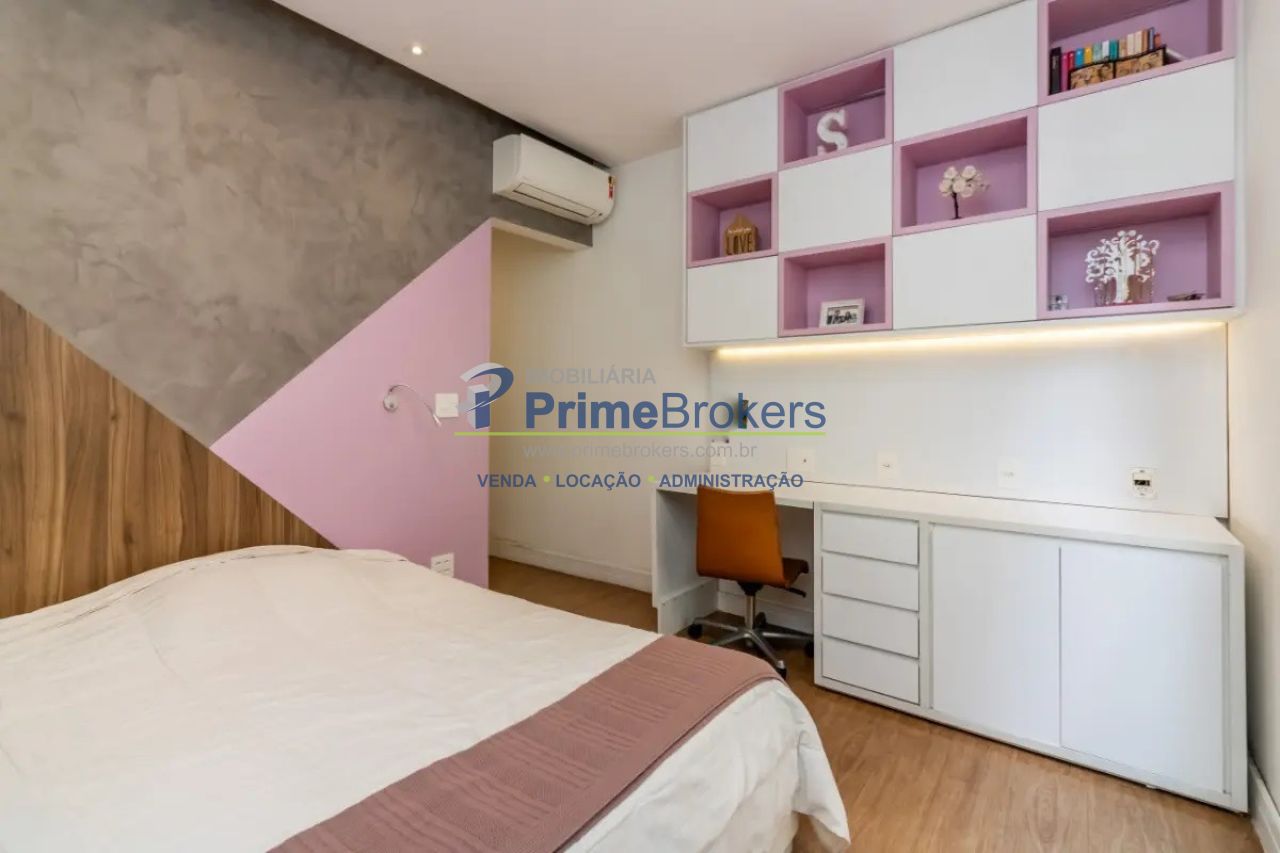 A sala possui o piso em madeira maciça e dos quartos, vinifico. Todos os cômodos possuem marcenaria planejada completa além de ar condicionado split quente/frio.