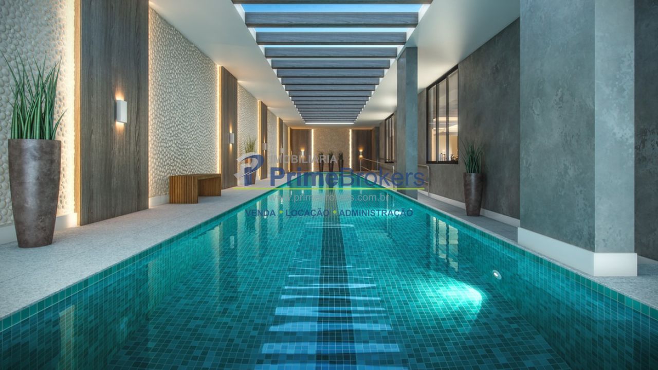 Piscina coberta com raia semi-olímpica, academia completa, salão de festas sofisticado com churrasqueira externa, mini-quadra