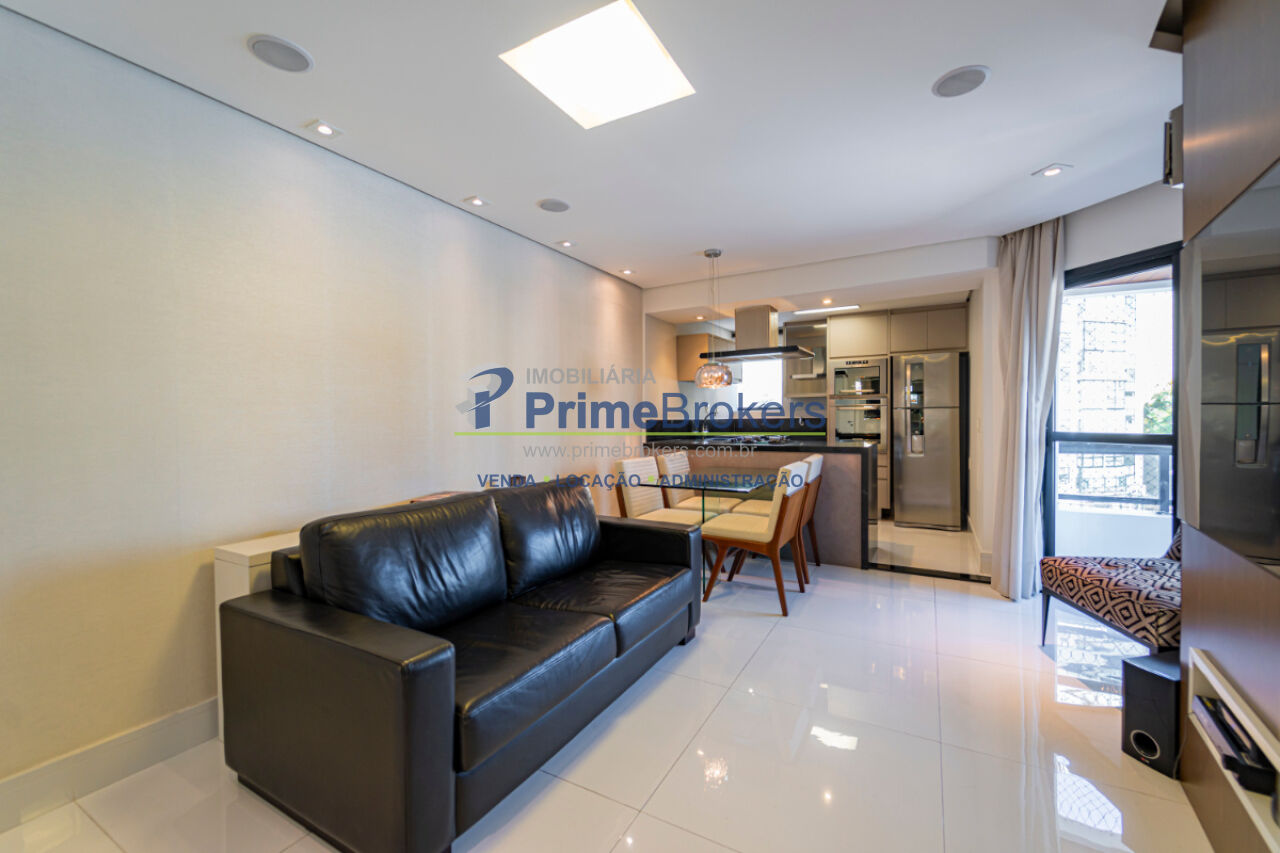 2 dormitórios (1 suíte), 2 banheiros, reforma completa moderna, acabamentos de alto padrão, mobiliado e equipado, cozinha integrada com eletrodomésticos novos, armários embutidos planejados, piso porcelanato, sacada, home theater, 2 vagas de garagem
