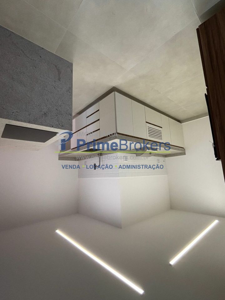 A planta é bem distribuída: sala ampla integrada à cozinha com ilha, que já vem equipada com churrasqueira, cooktop, forno a gás embutido e armários planejados. Conta ainda com despensa e banheiro de serviço.